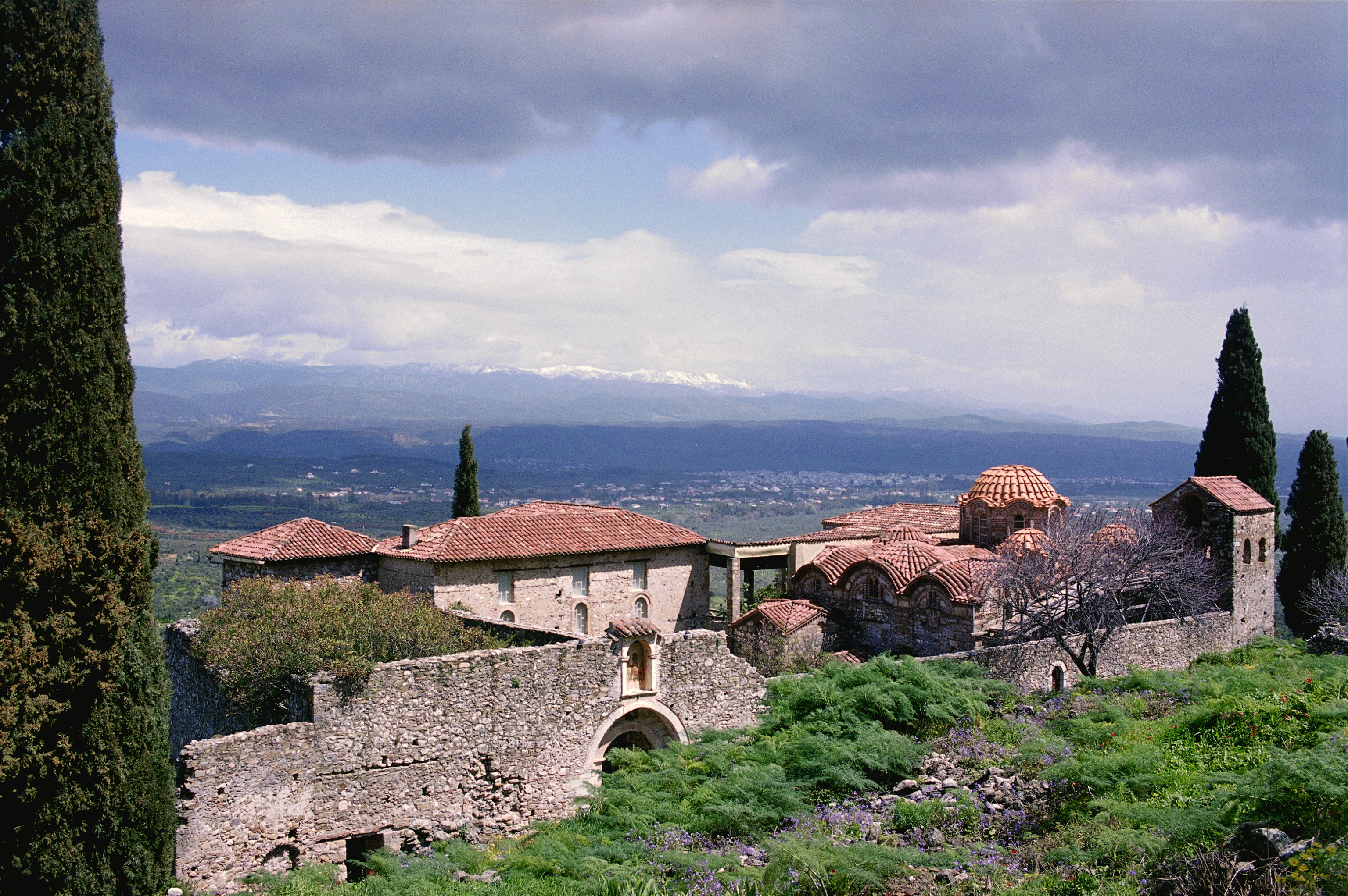 Overall view of complex in its setting overlooking the Evrotas valley, view E