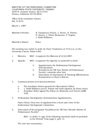 Minutes of the Personnel Committee 03/01/2007