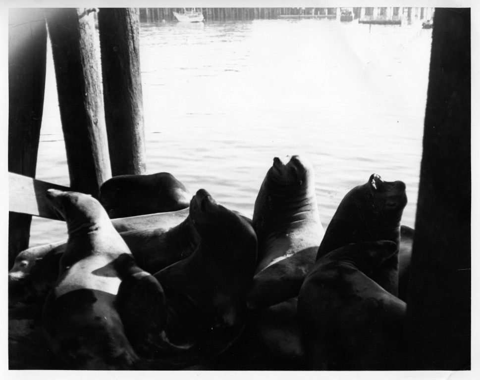 Sea lions below Monterey pier, which Steinbeck mentions in Cannery Row