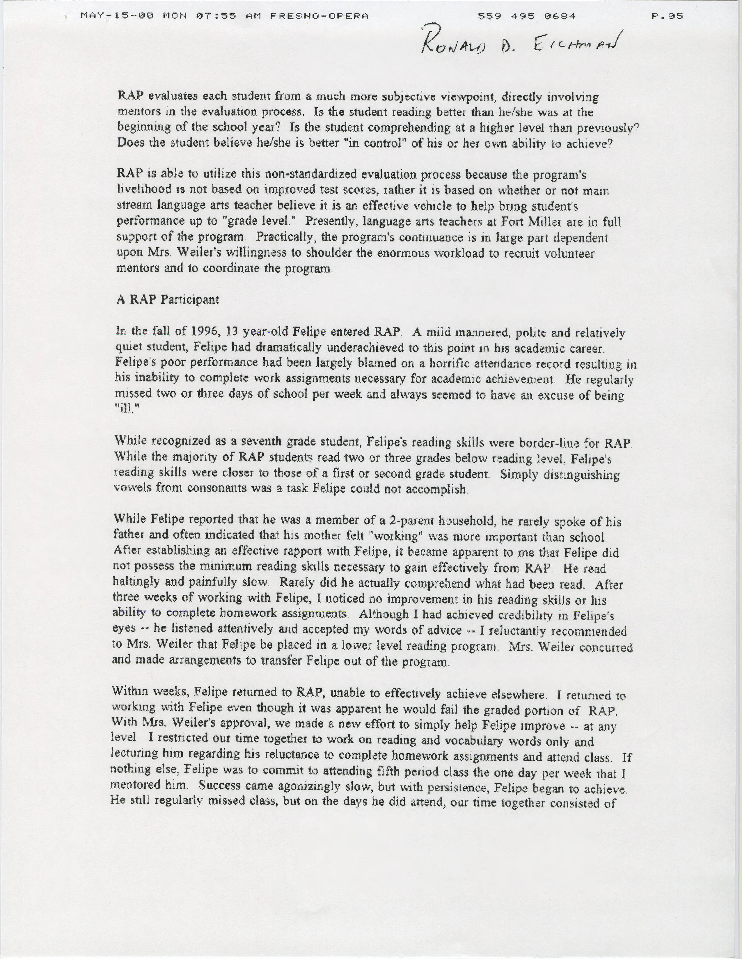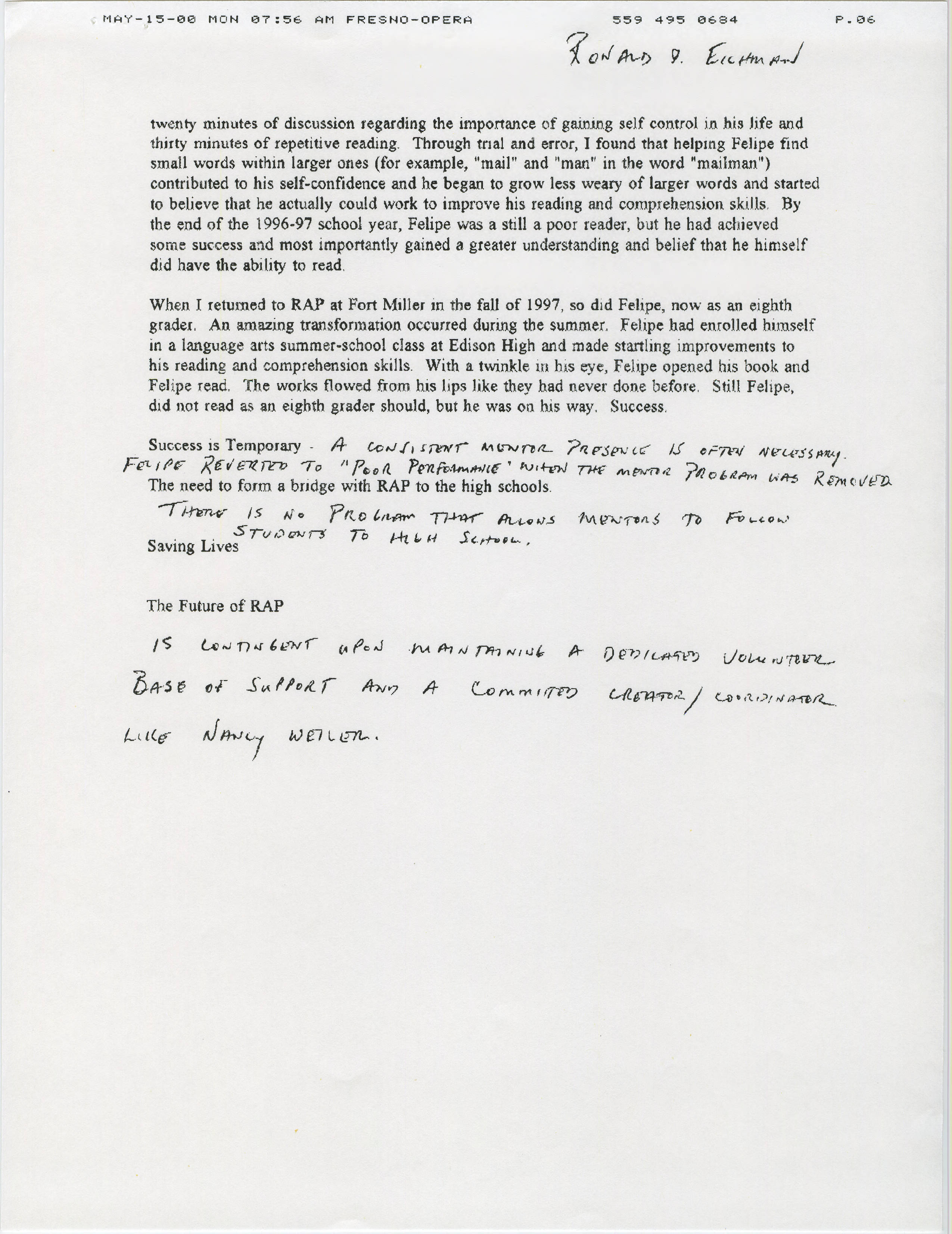 Mentoring in the Schools: The Fort Miller Junior High Example