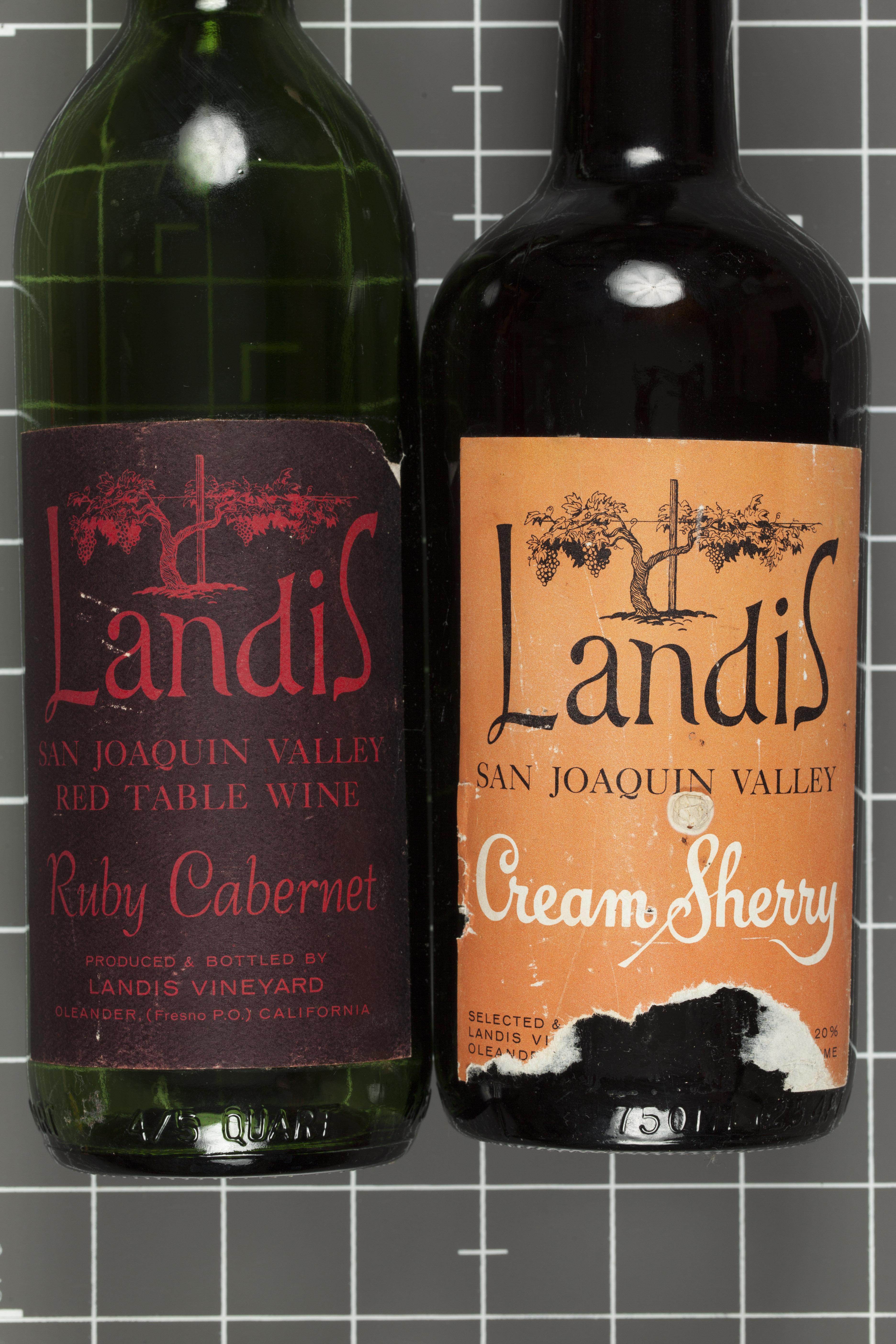 Labels designed by Rollin Pickford for the Landis winery. Only Cream Sherry and Ruby Cabernet were produced before the winery went out of business. The Landis family were very close friends of the Pickford family.