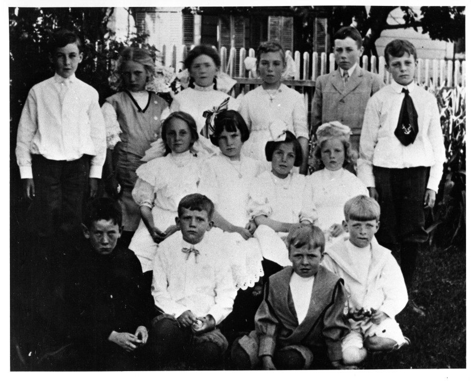John Steinbeck as boy at birthday party, identified as being front row, 2nd from right, but could also be front row, left-most.