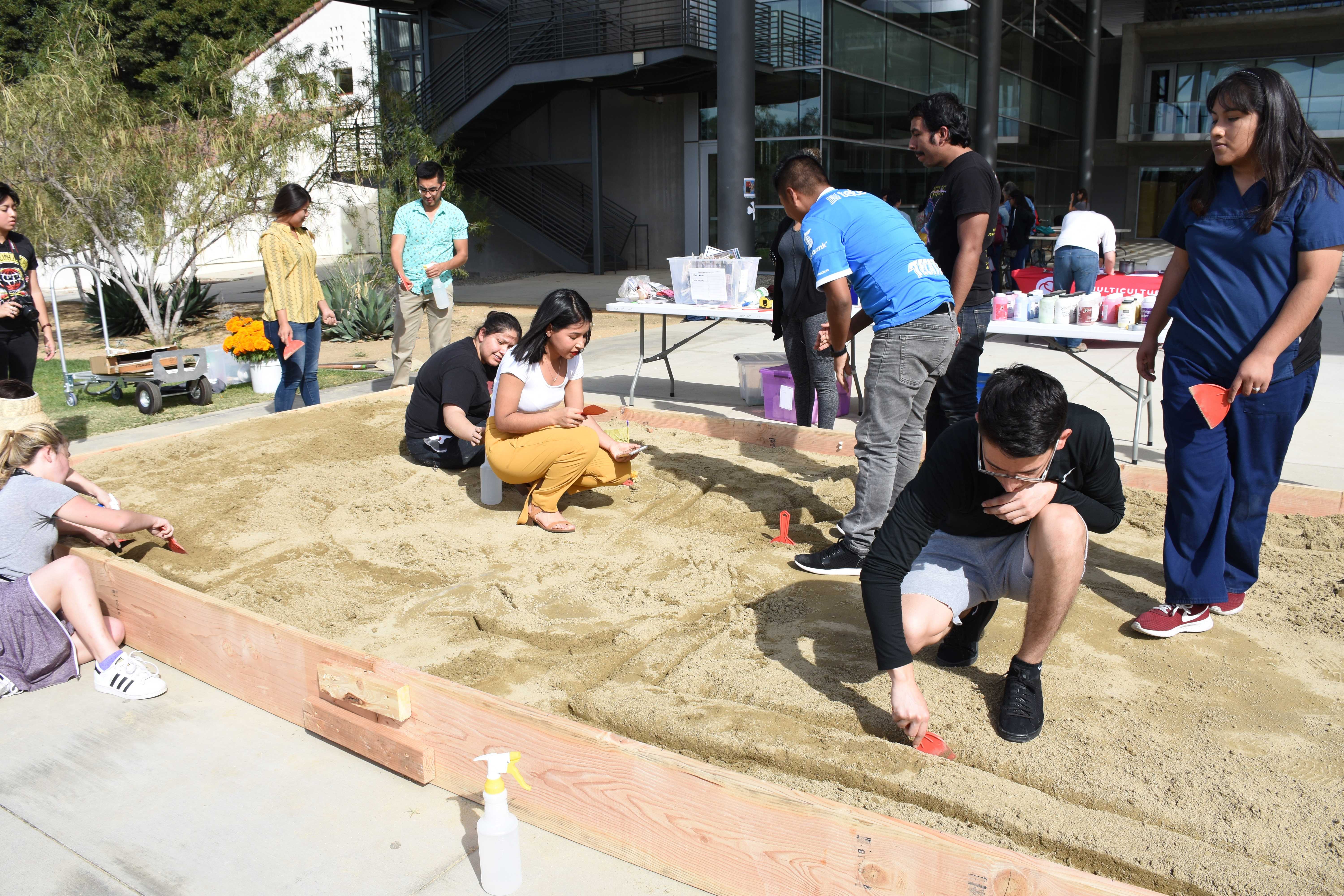 CI students working on the sand mural for the 2018 Day of the Dead celebration.