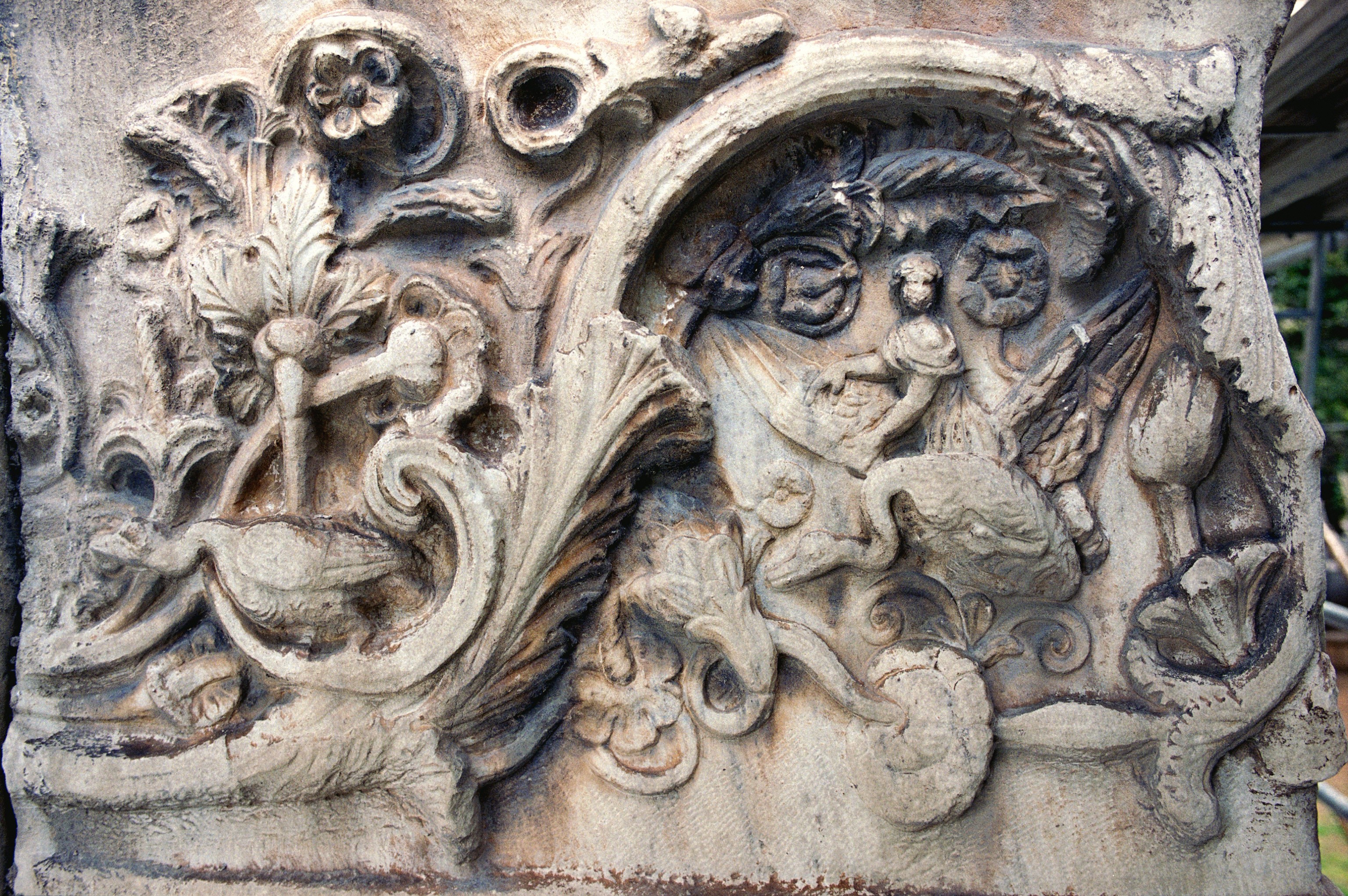 Closer view of relief at SW corner of W façade
