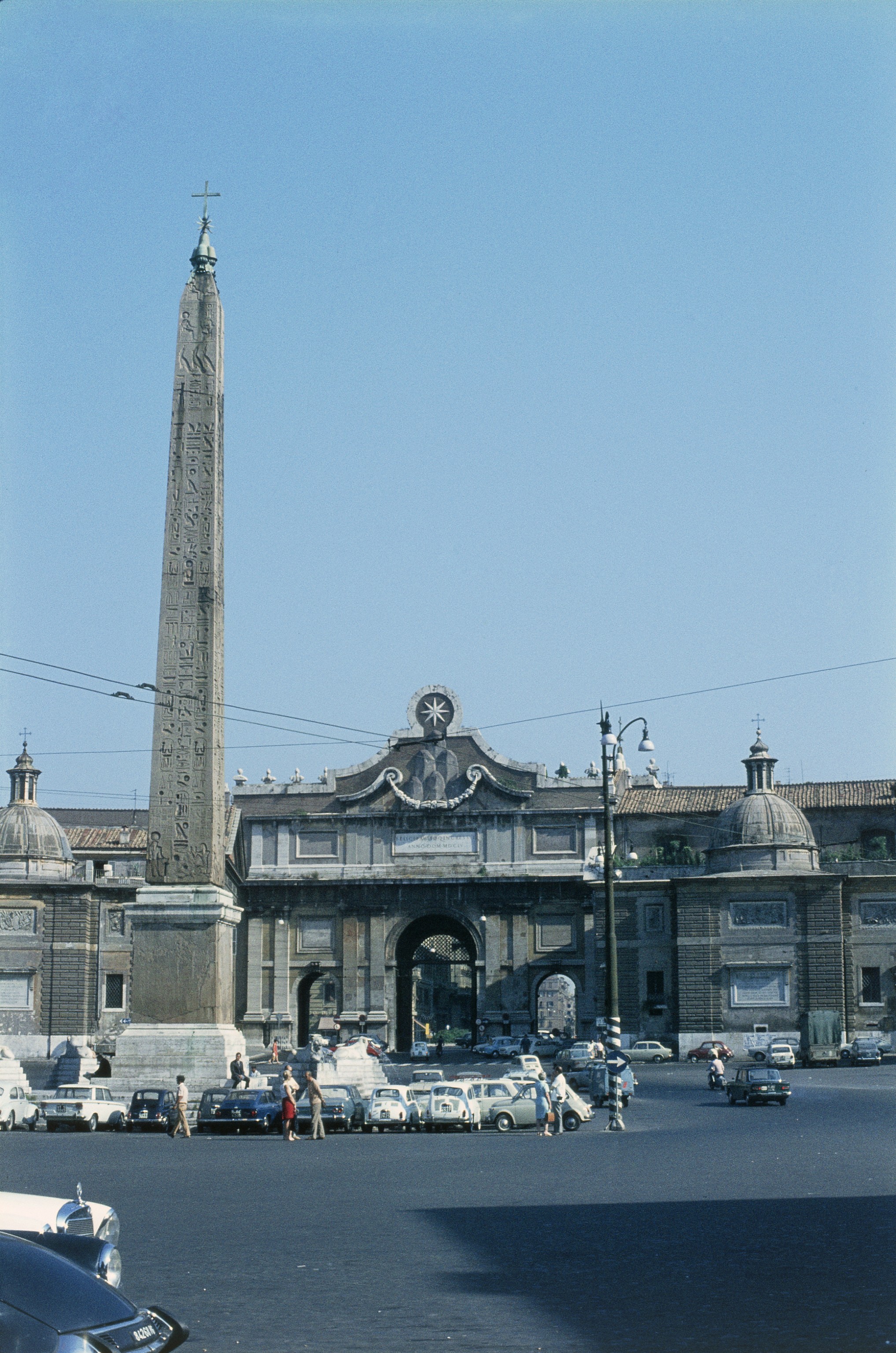 View of Obelisk w. Porta del Popolo by Bernini (1655) behind