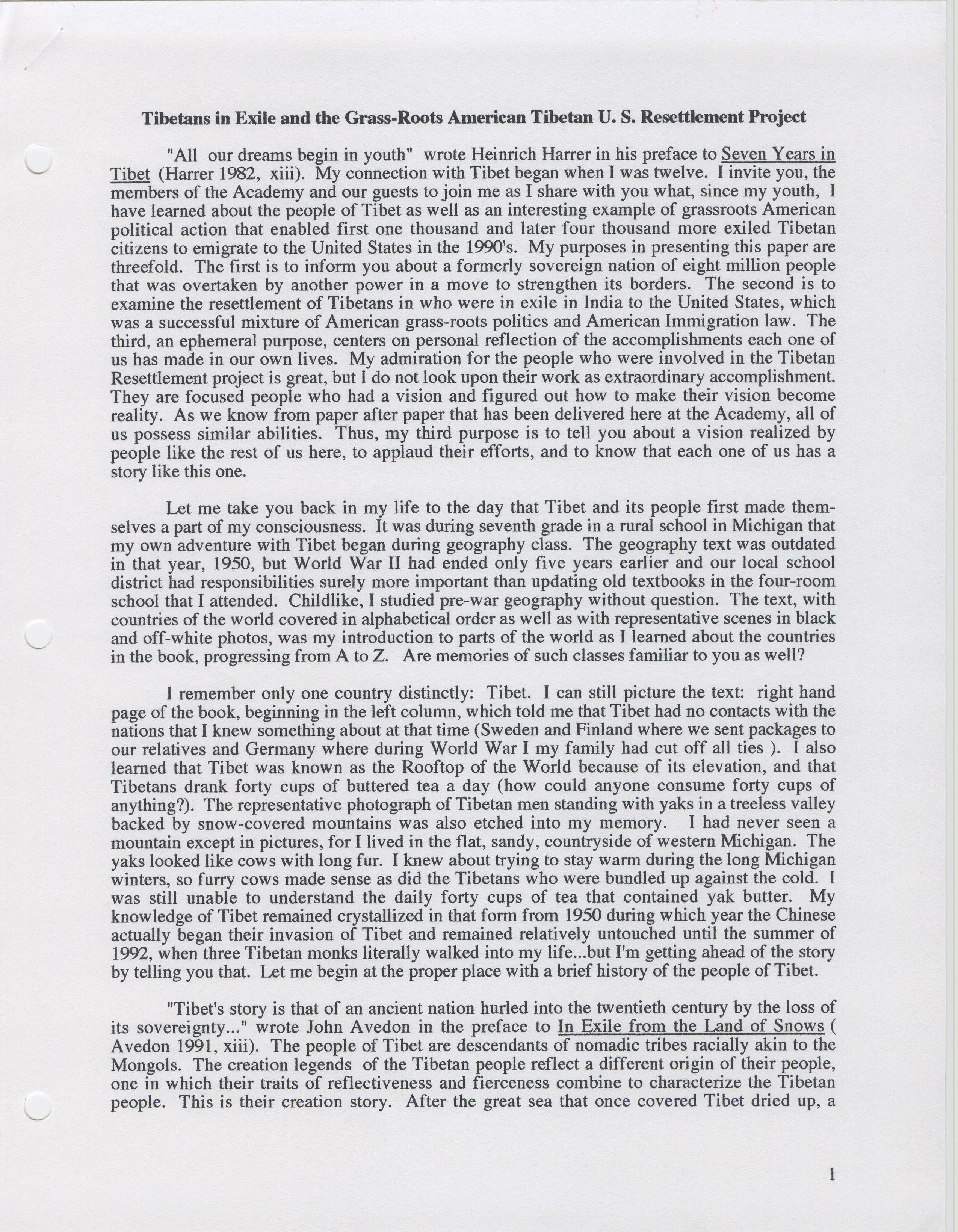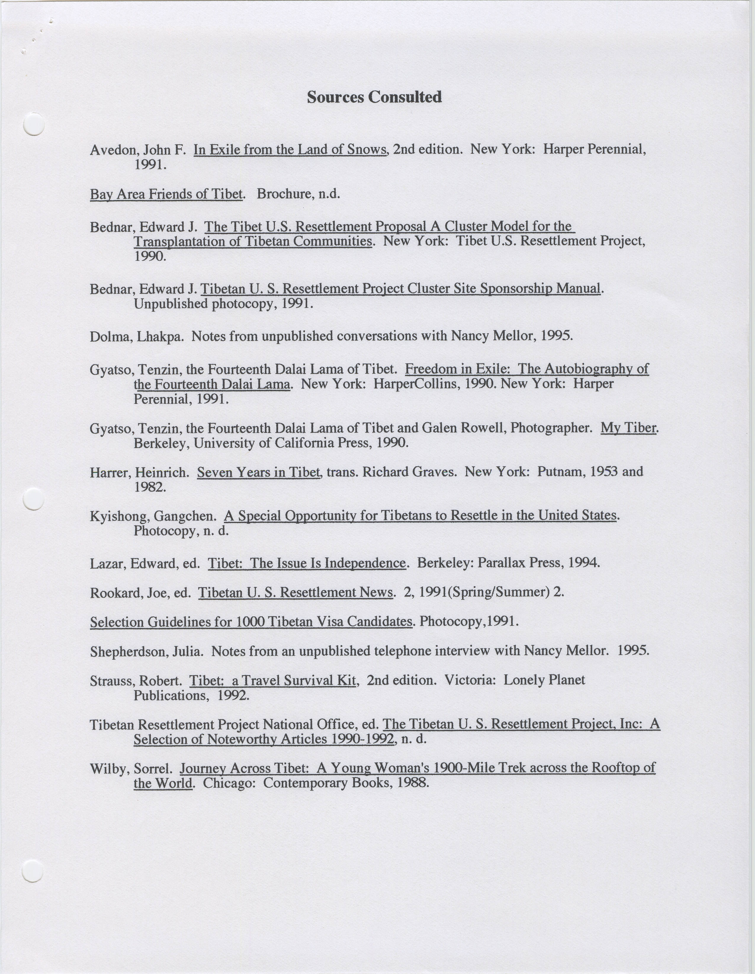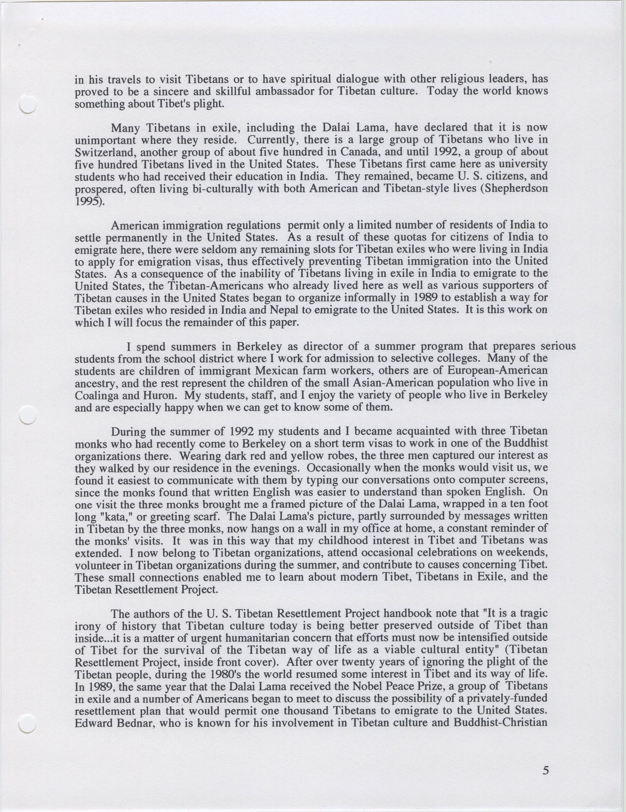 Tibetans in Exile, Grass Roots American Tibetan U.S. Resettlement