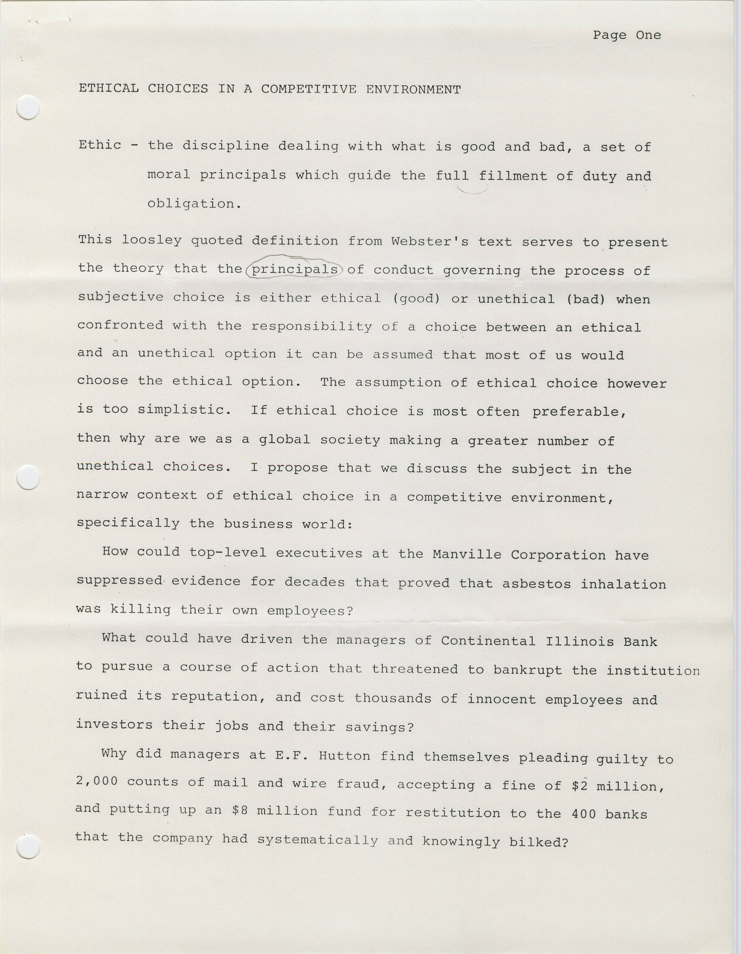 Ethical Choices in a Competitive Environment