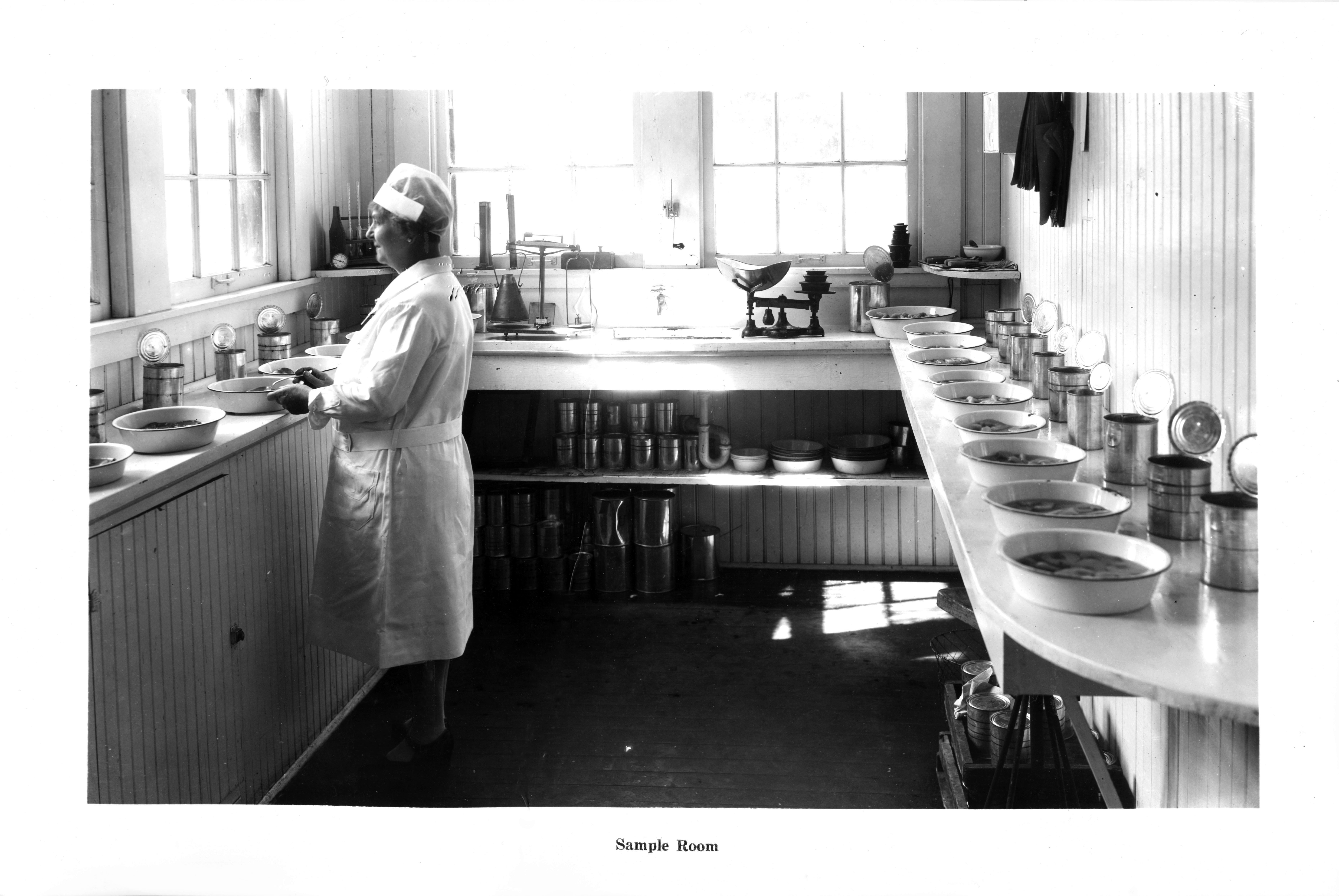 Cannery worker in sample room.