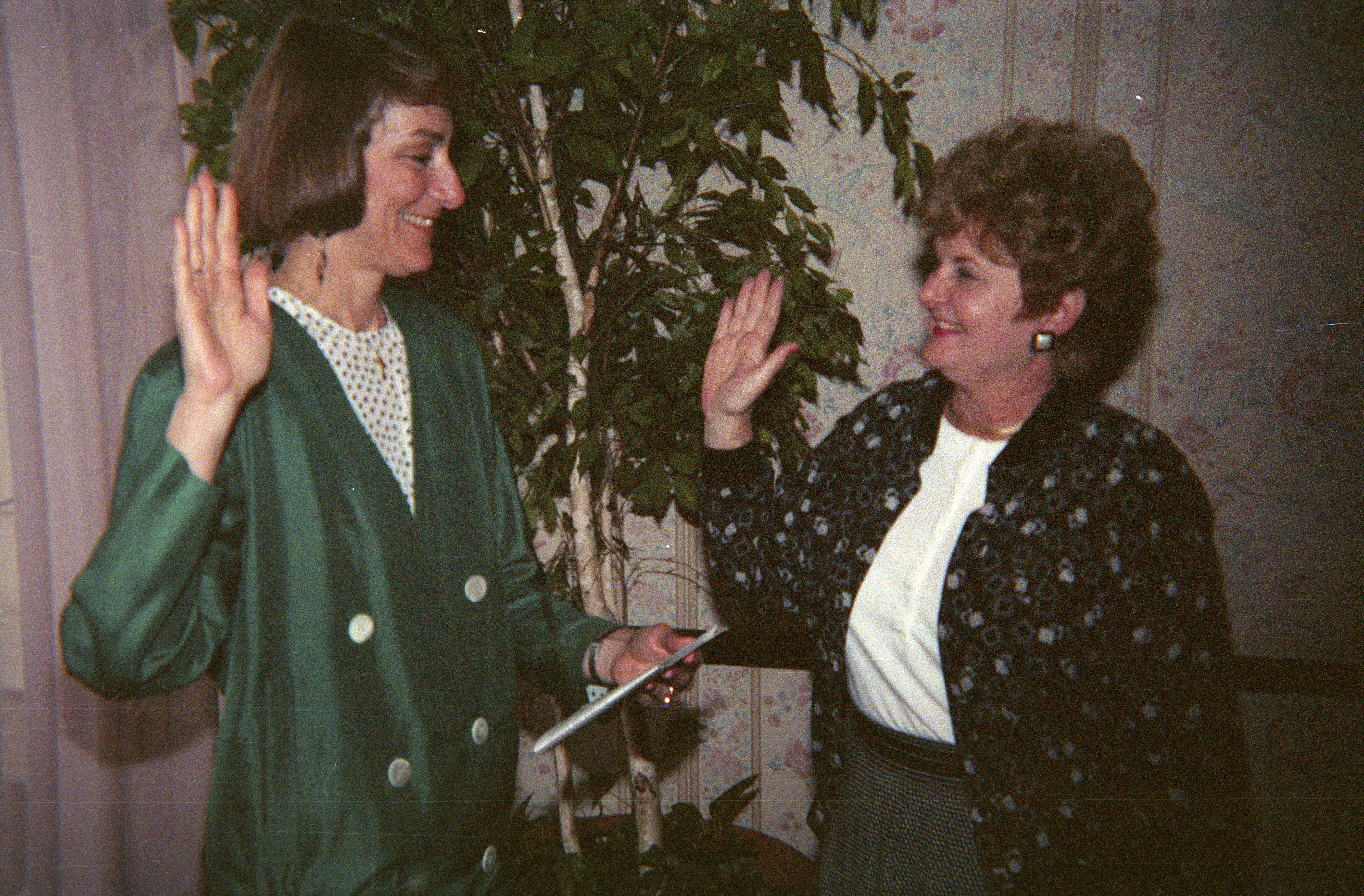 Hon. Judith Chirlin administering oath of office to Doris Coleman, former President of Fresno County Women Lawyers