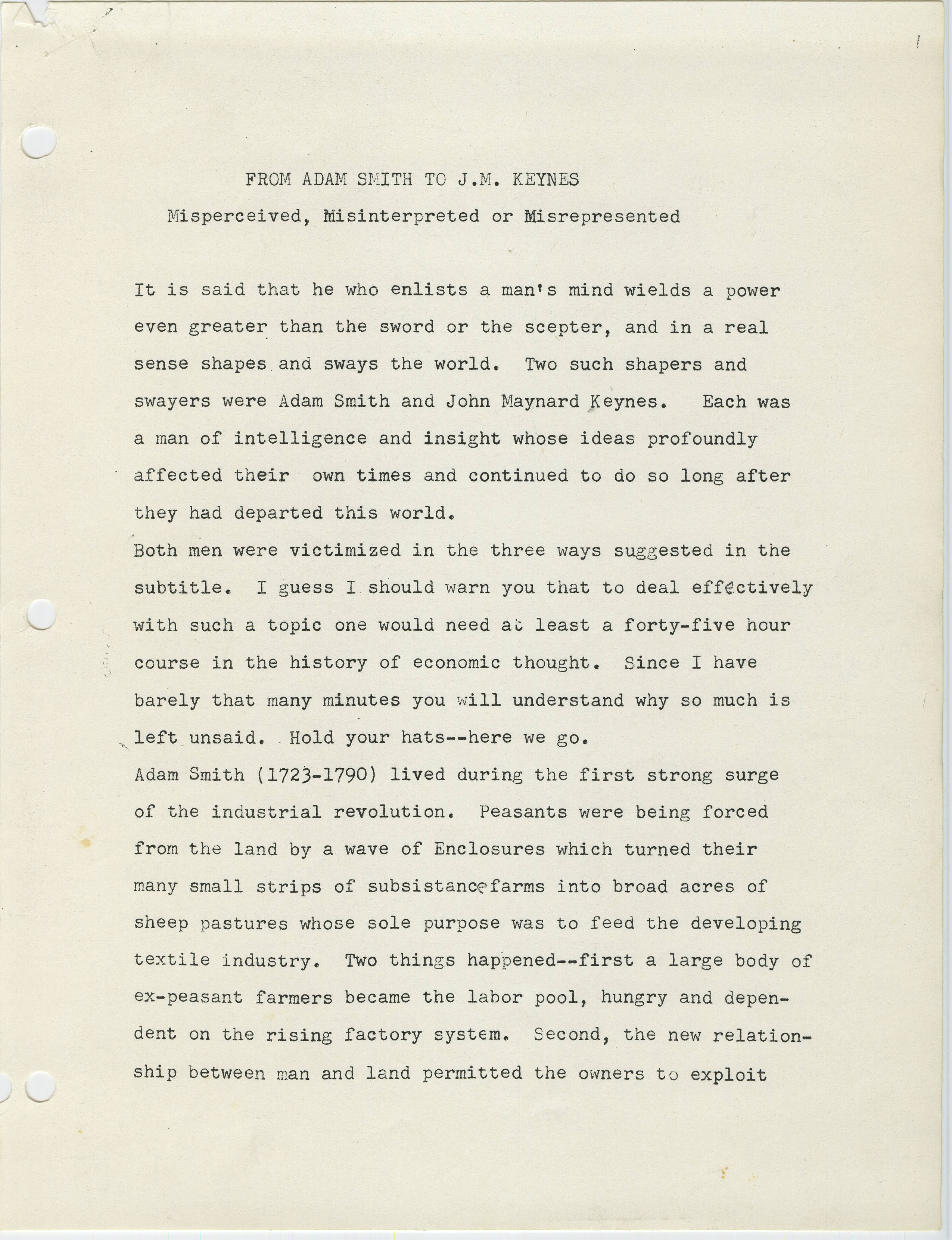 From Adam Smith to J.M. Keynes: Misperceived, Misinterpreted or Misrepresented