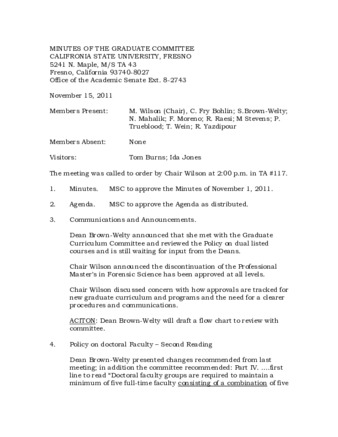 Minutes of the Graduate Committee 11/15/2011