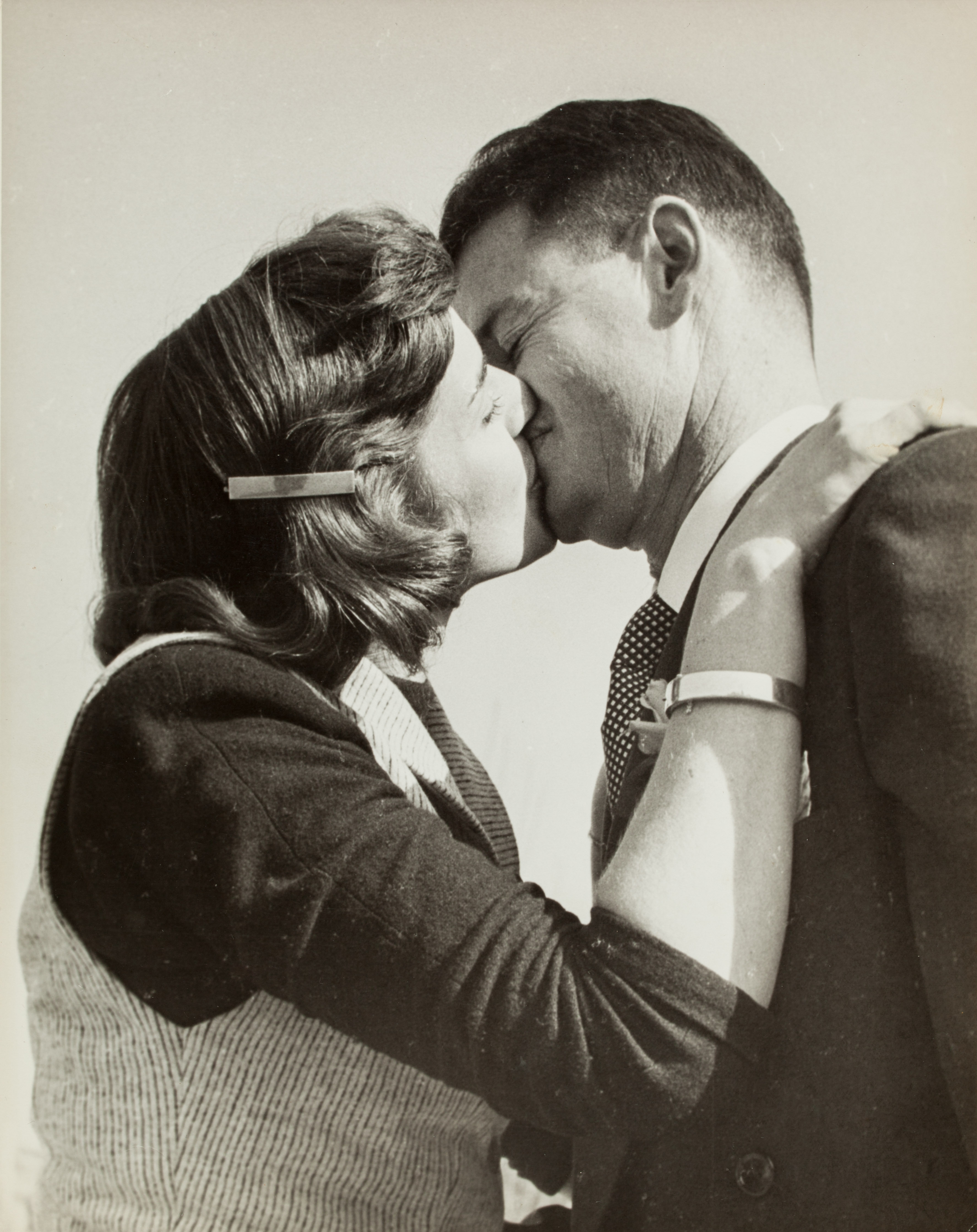 Photographer Rue Farris Drew kisses Rollin after the ceremony. Candid photograph by her husband and pioneering filmmaker, Robert Drew.