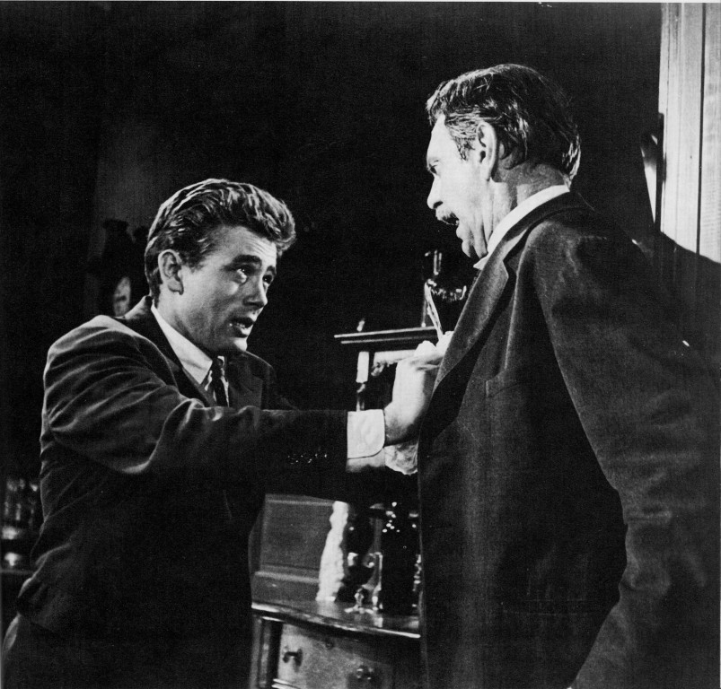 Cal Trask (James Dean) and Adam Trask (Raymond Massey) display their very real dislike for each other. RESTRICTED USE Digital copy only. No hard copy.