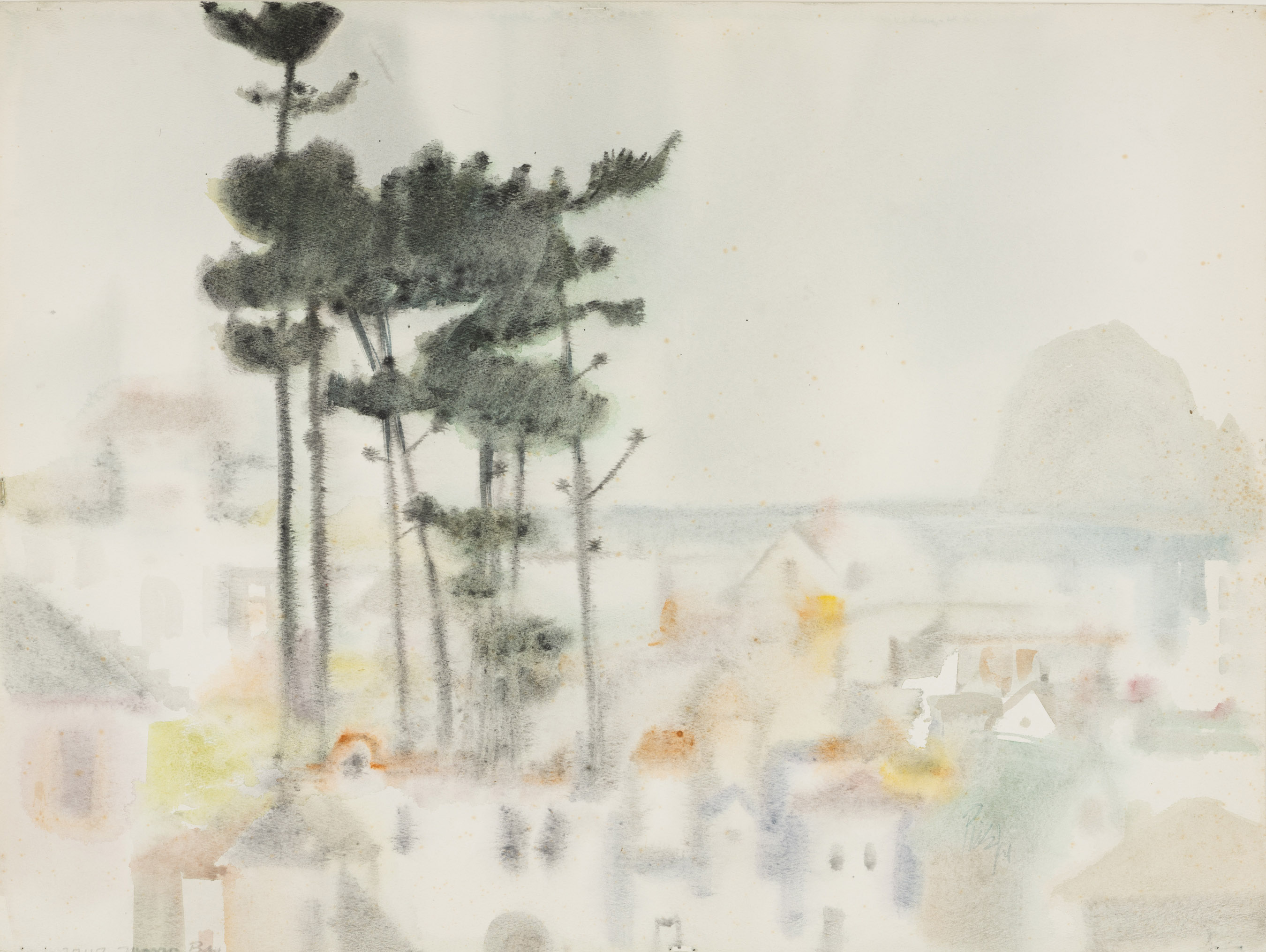 Morro Bay with Pines and Boats