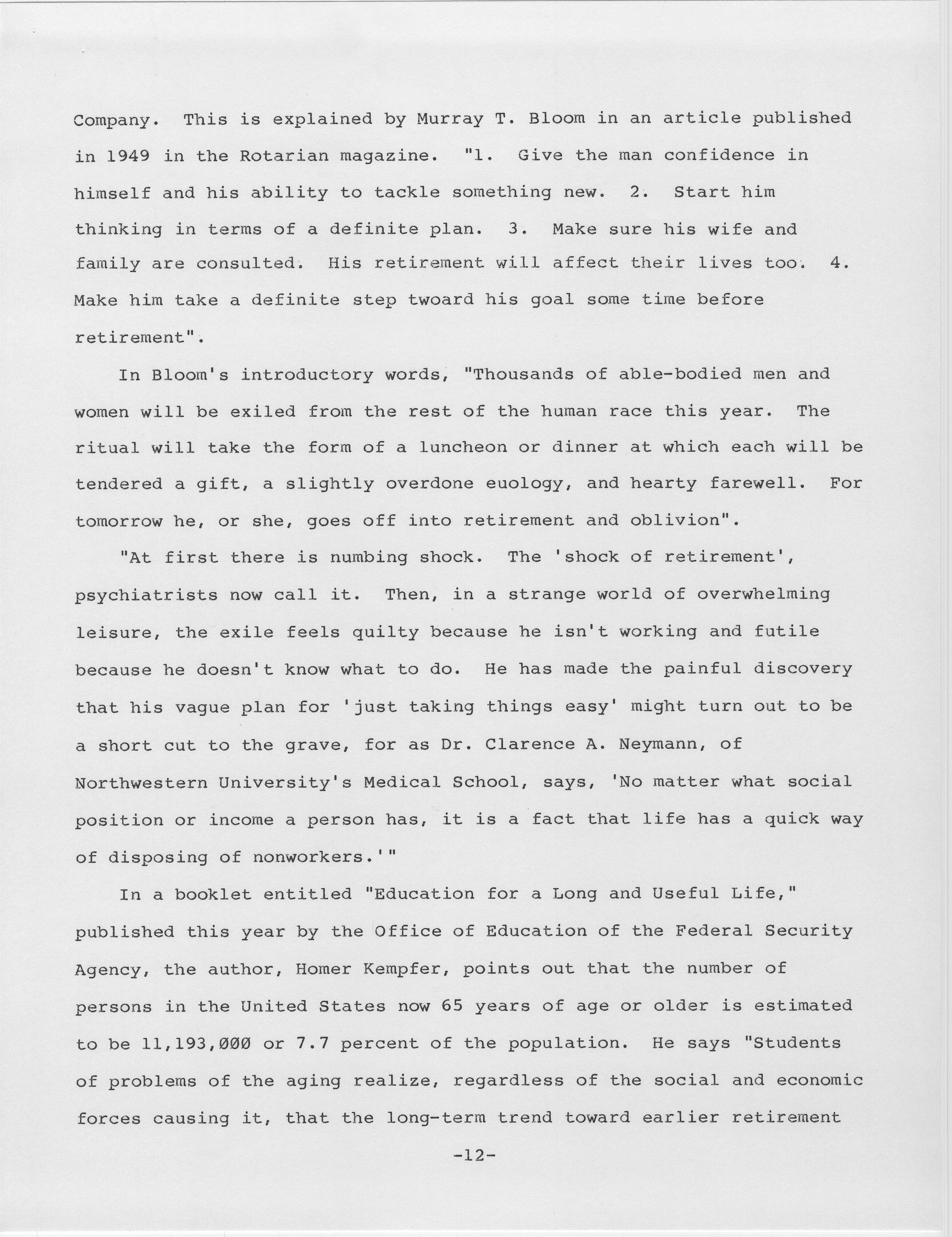 Problems of Retirement