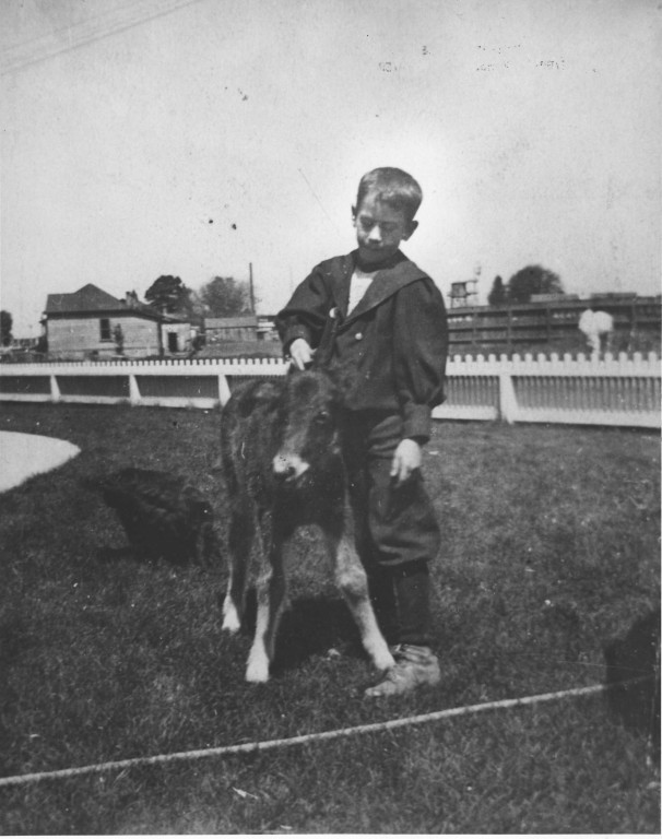 Young John Steinbeck holding onto the pony foal, Jill.