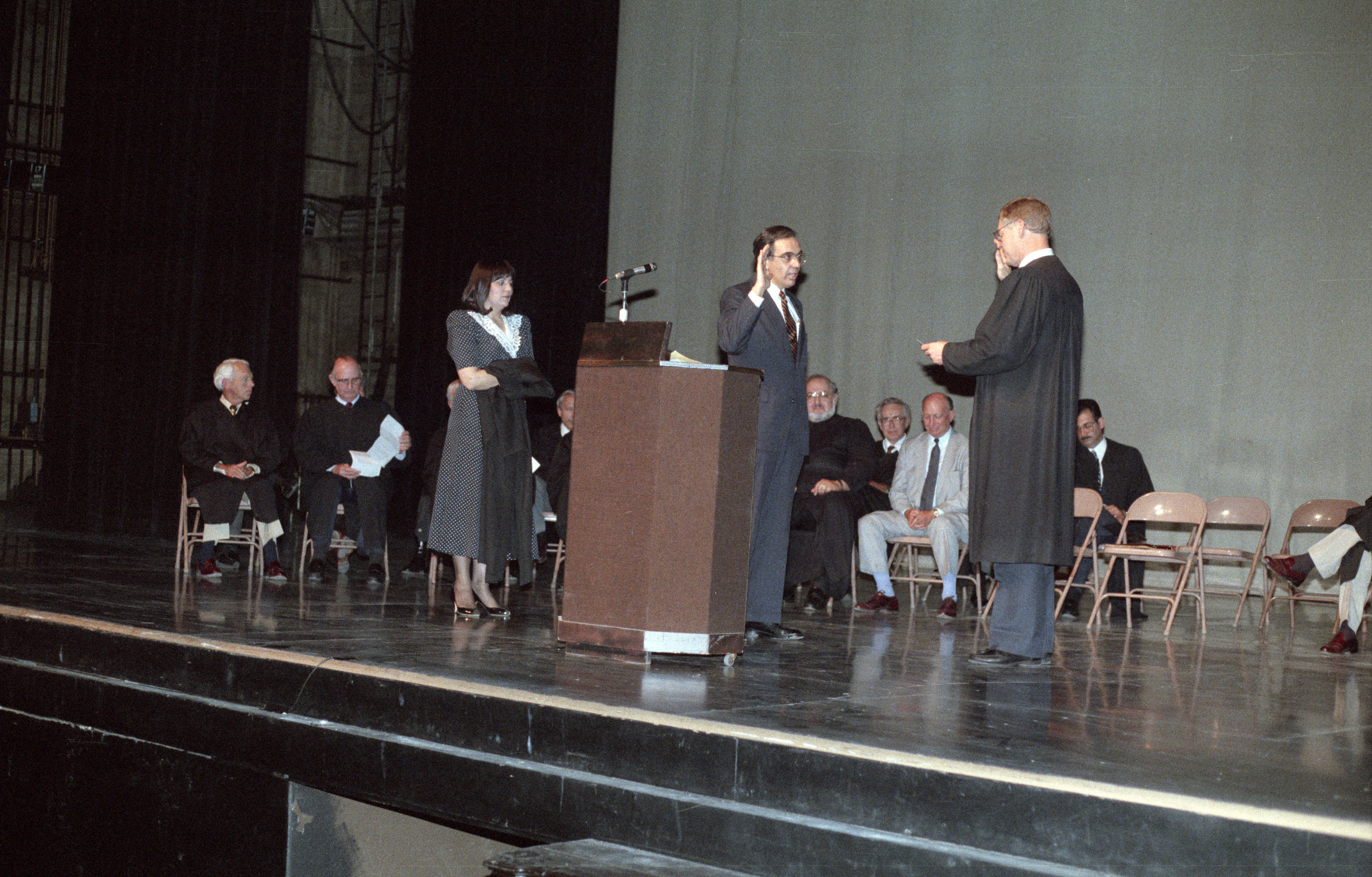 Judge Stephen Henry administering the oath of office to Edward Sarkisian, Jr.; wife Jackie Sarkisian looking on