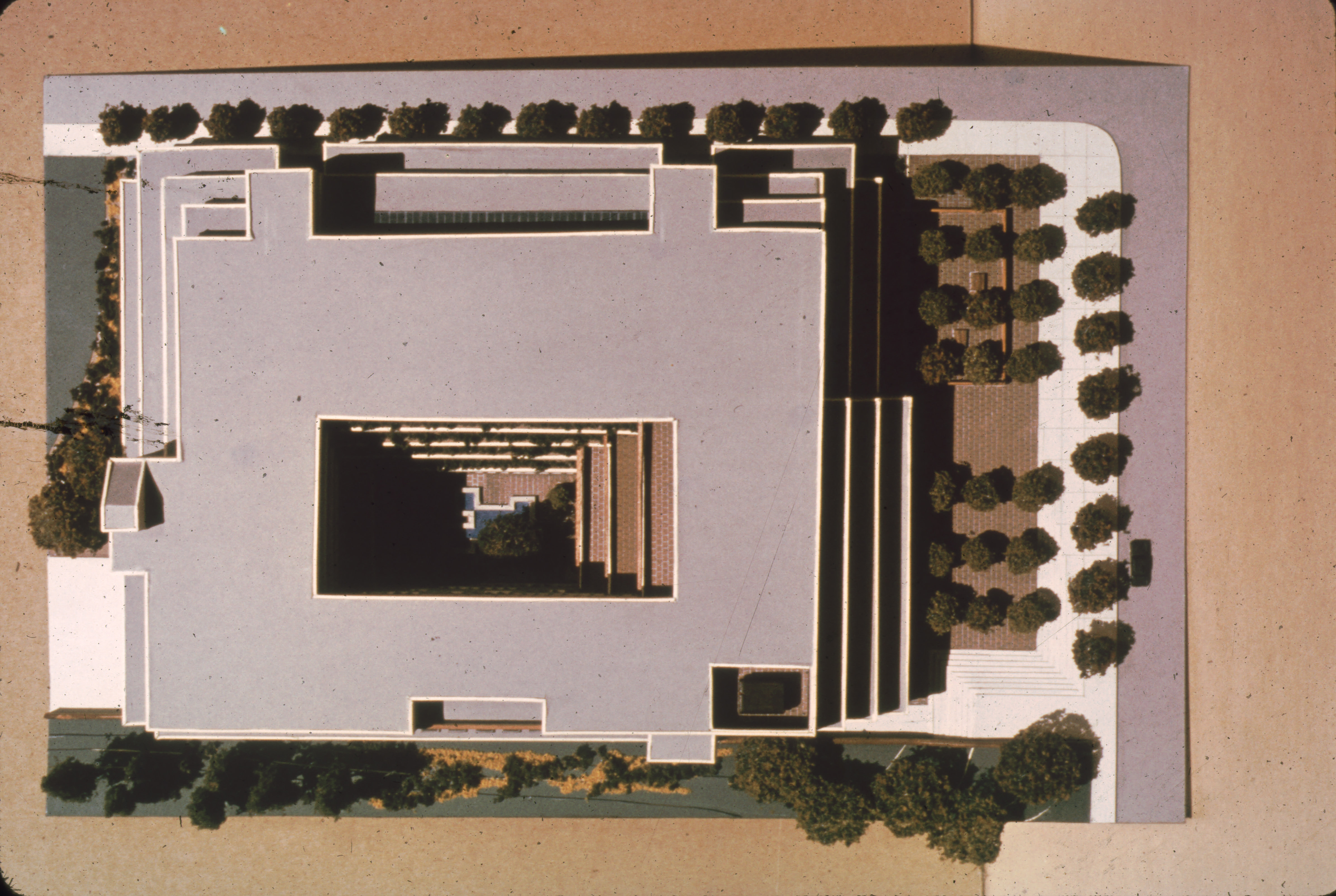 [Top-down view of Kennedy Library architectural model]