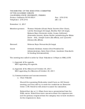 Minutes of the Executive Committee 11/13/2017