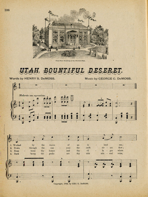 Piano scores,163 p., illus., contains 59 songs, most of which relate to U.S. states. DeMoss were official song-writers of the Worlds Columbian Exposition, Chicago, U.S.A., 1893.