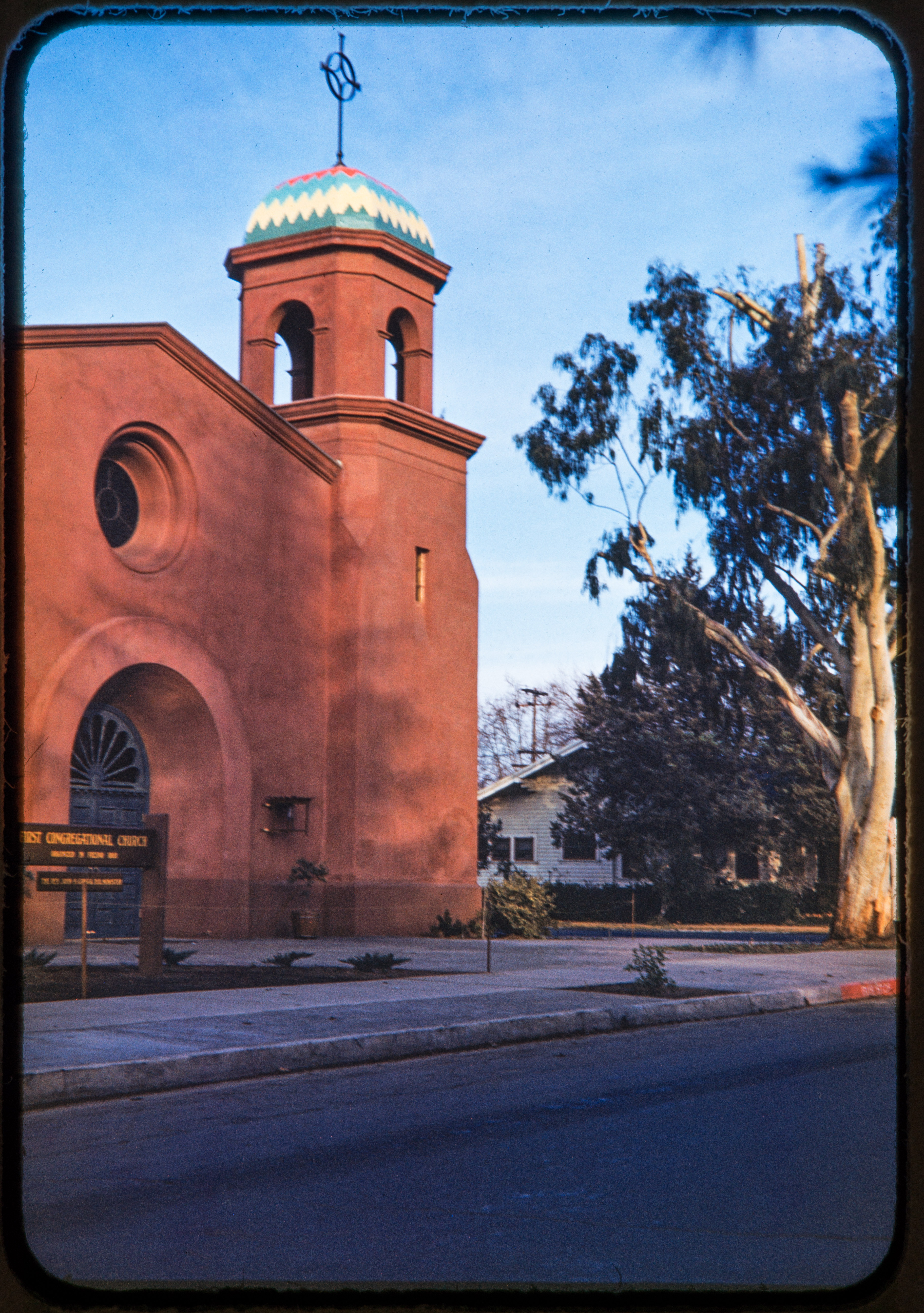 First Congregational Church after opening, 1950. Rollin chose the tile colors seen on the dome the dome at the request of Pastor John Gregg.