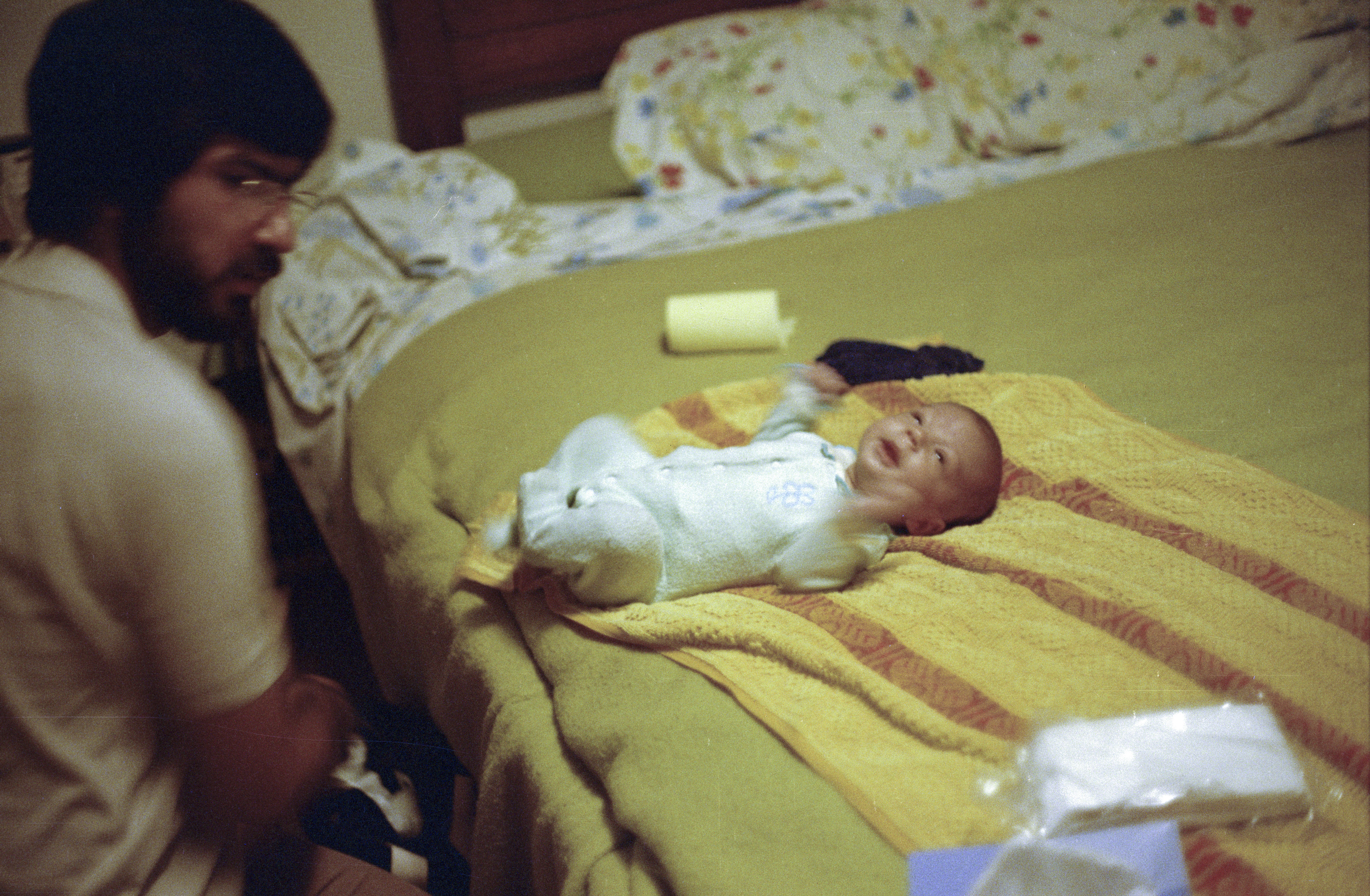 William Leifer changing Gregory Leifer's diaper