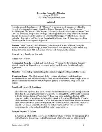 Executive Committee Minutes 2009-08-27