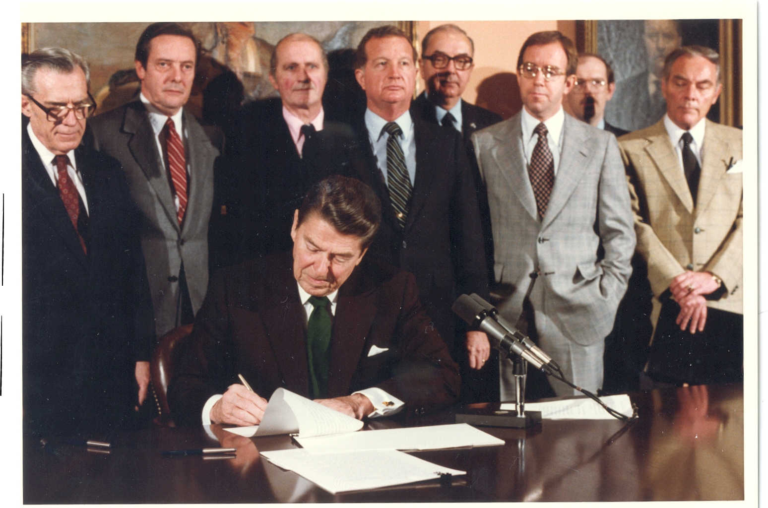 Photo of President Ronald Reagan Signing Bill with Congressman Robert Lagomarsino