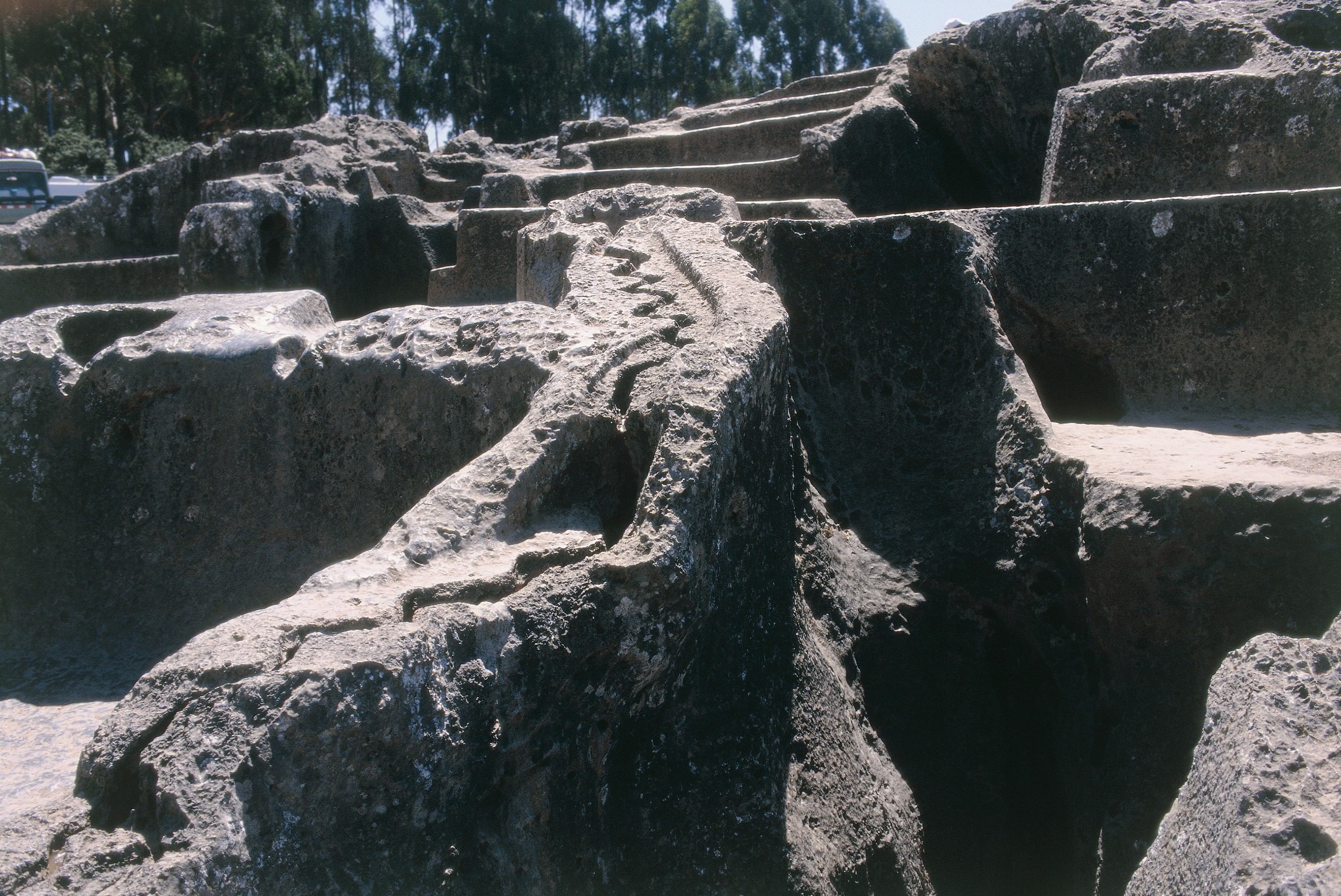 Zigzag channels carved into the upper surface of the Qenko monolith, used for ritual purposes