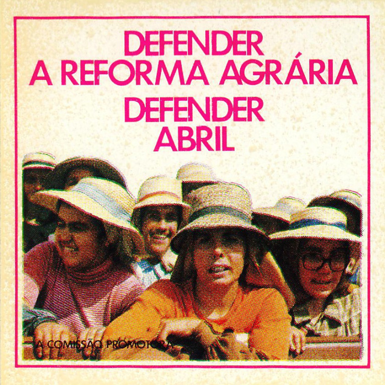 Defender a reforma agrária Defender Abril A comissão promotora Defend the land reform Defend April The sponsoring committee “April” refers to the Carnation Revolution of 25 April 1974.