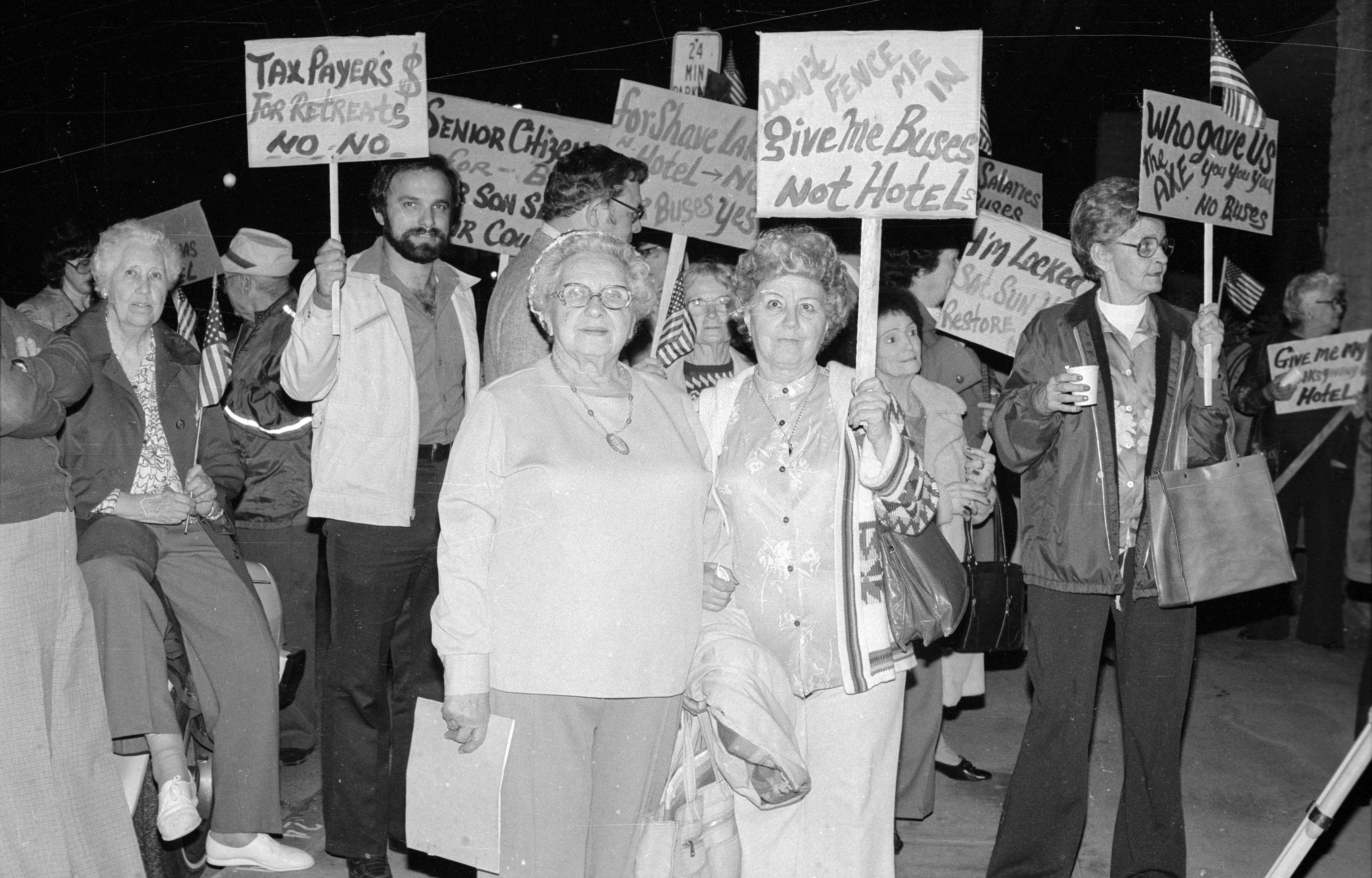 Senior Citizens Protesting at Exhibit Hall Mayor Dan Whitehurst Funding Policies