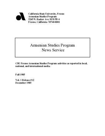 Armenian Studies Program - News Service, Release #12, Vol.1