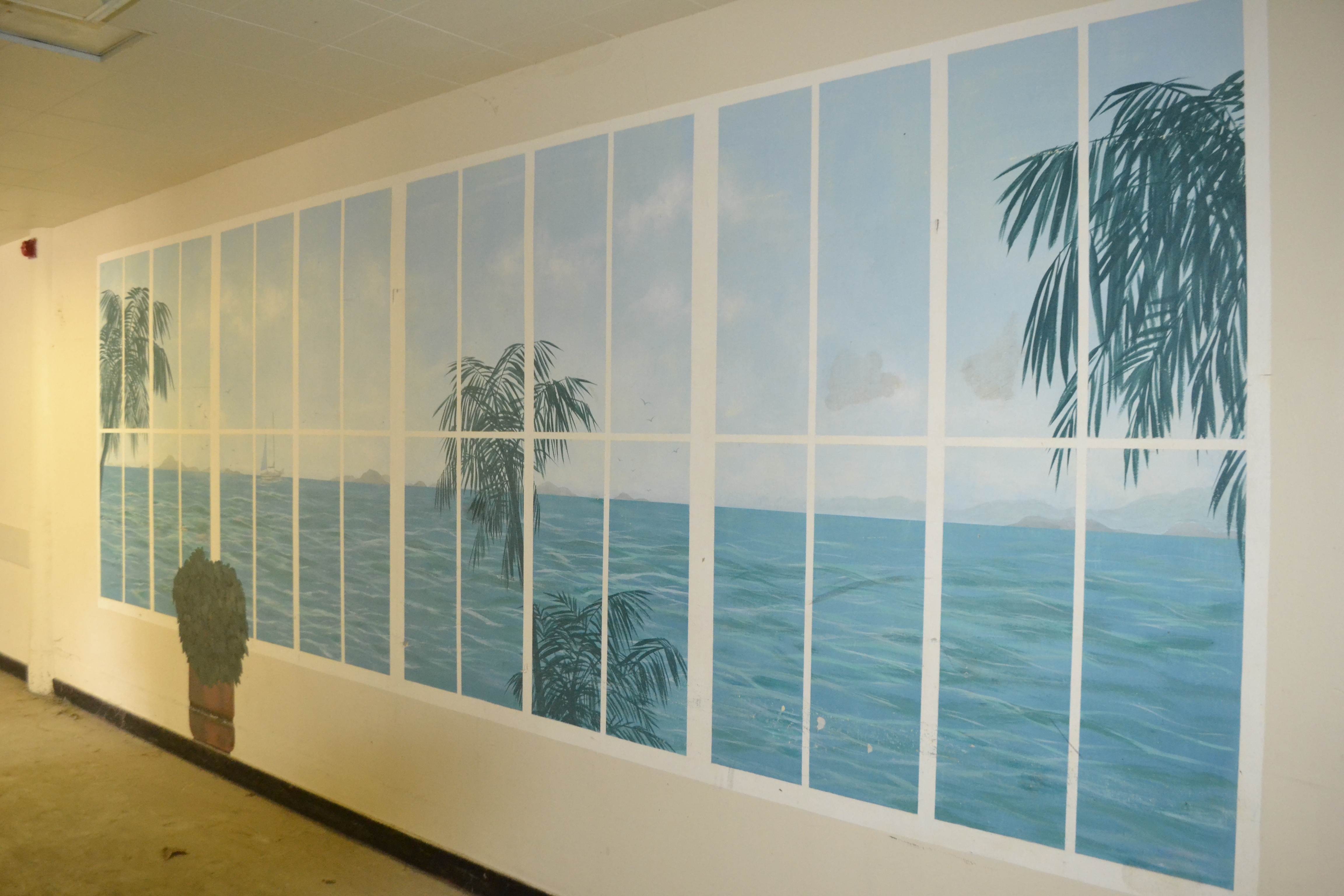 Murals of landscapes viewed through a window located in Unit 67.