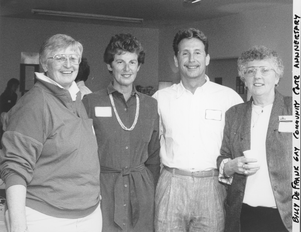 Group portrait of (left-to-right) Wiggsy Sivertsen, Susan Hammer, Jon Snell and an unidentified woman at the Billy De Frank Gay Community Center's seventh anniversary celebration.