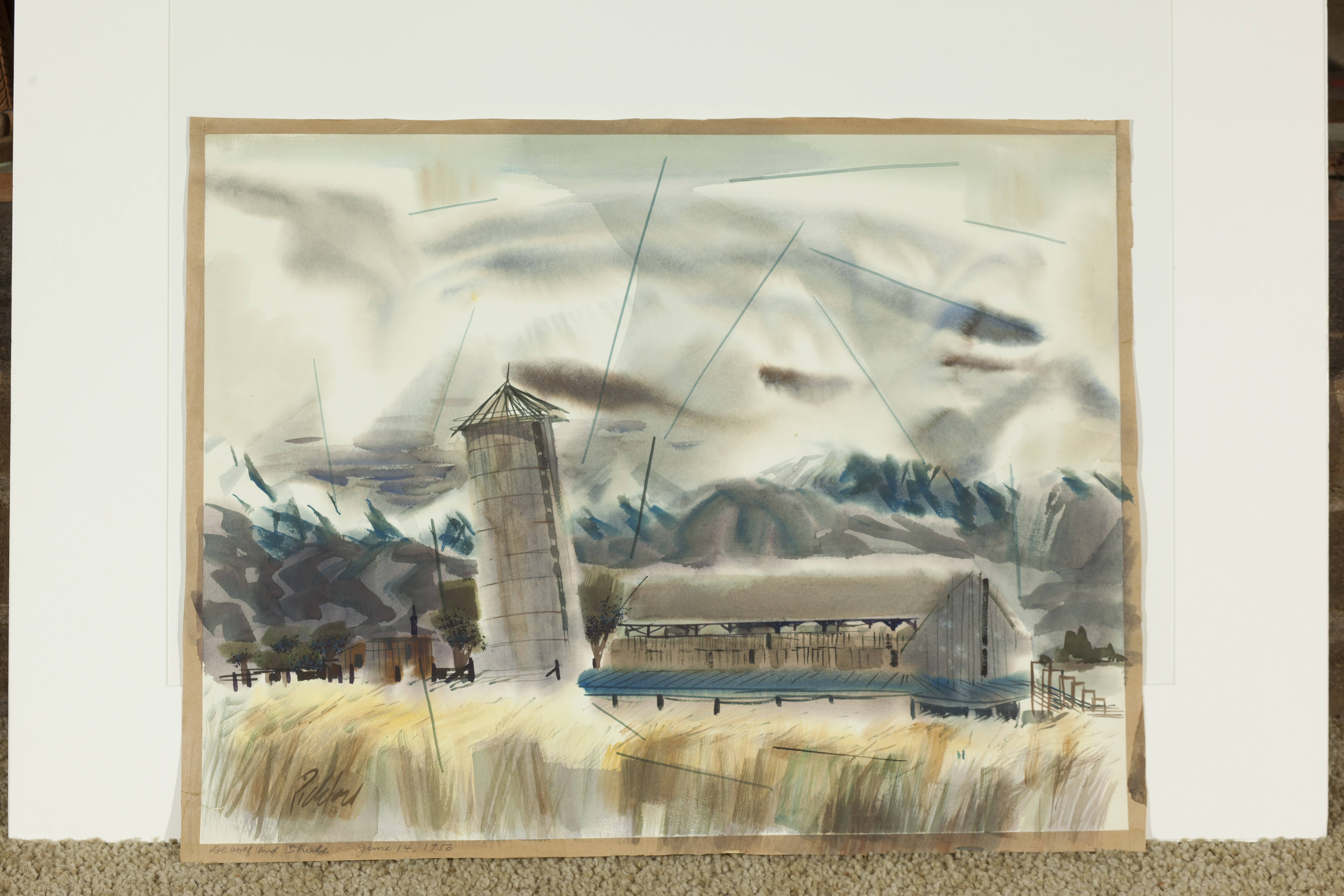 Barns, Silo, And Mountains