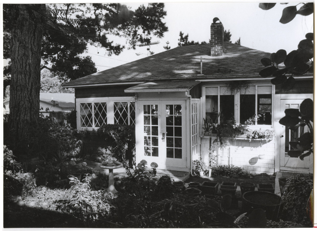 The Eleventh Street Steinbeck cottage showing the rear garden and entry. Built in 1903 by John Ernest Steinbeck, Sr., John's father, this house was used by the Steinbeck family as a summer vacation home. John and Carol Steinbeck lived in this cottage periodically from 1930-1936. RESTRICTED USE