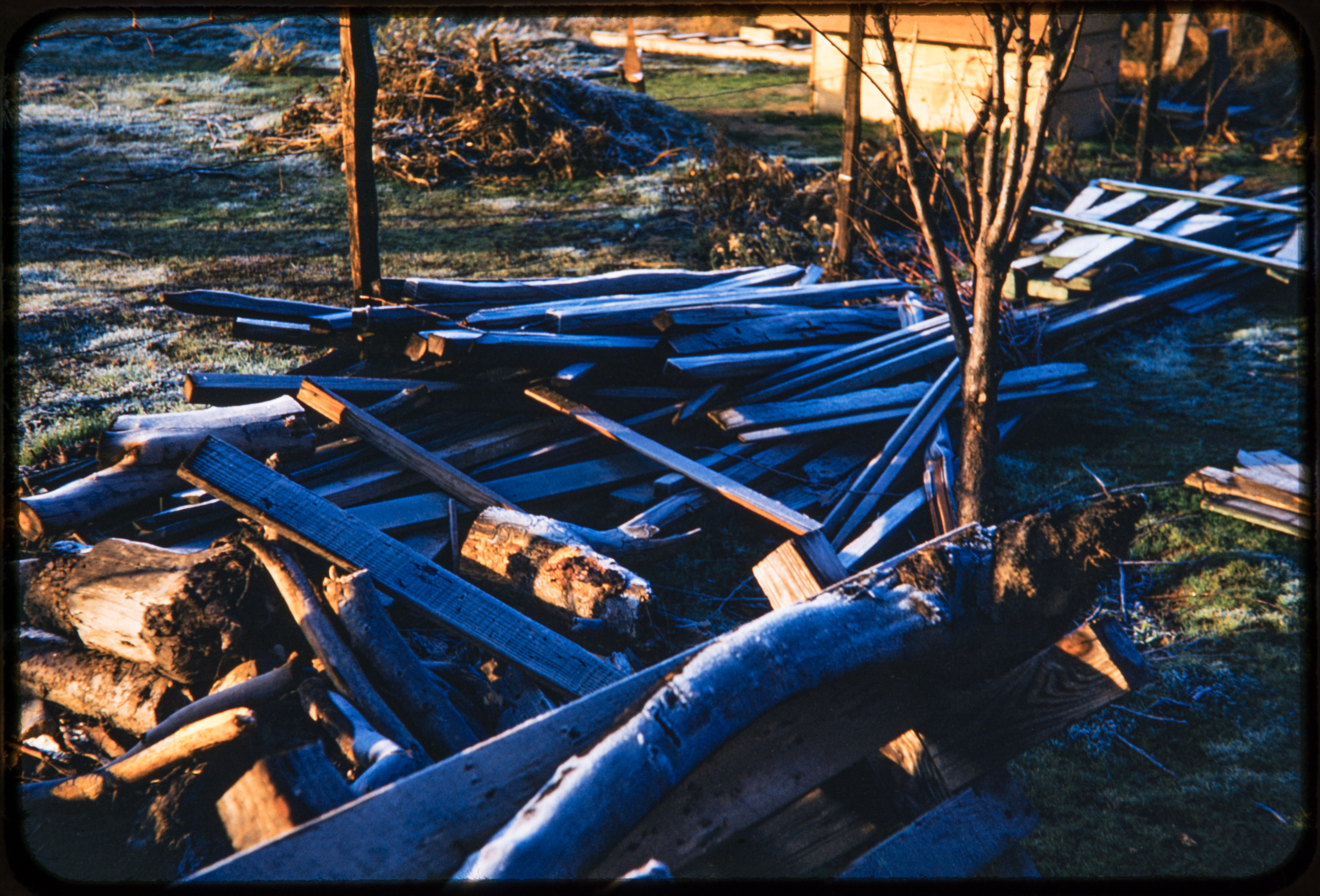 Frost and lumber pile, Pickford back yard