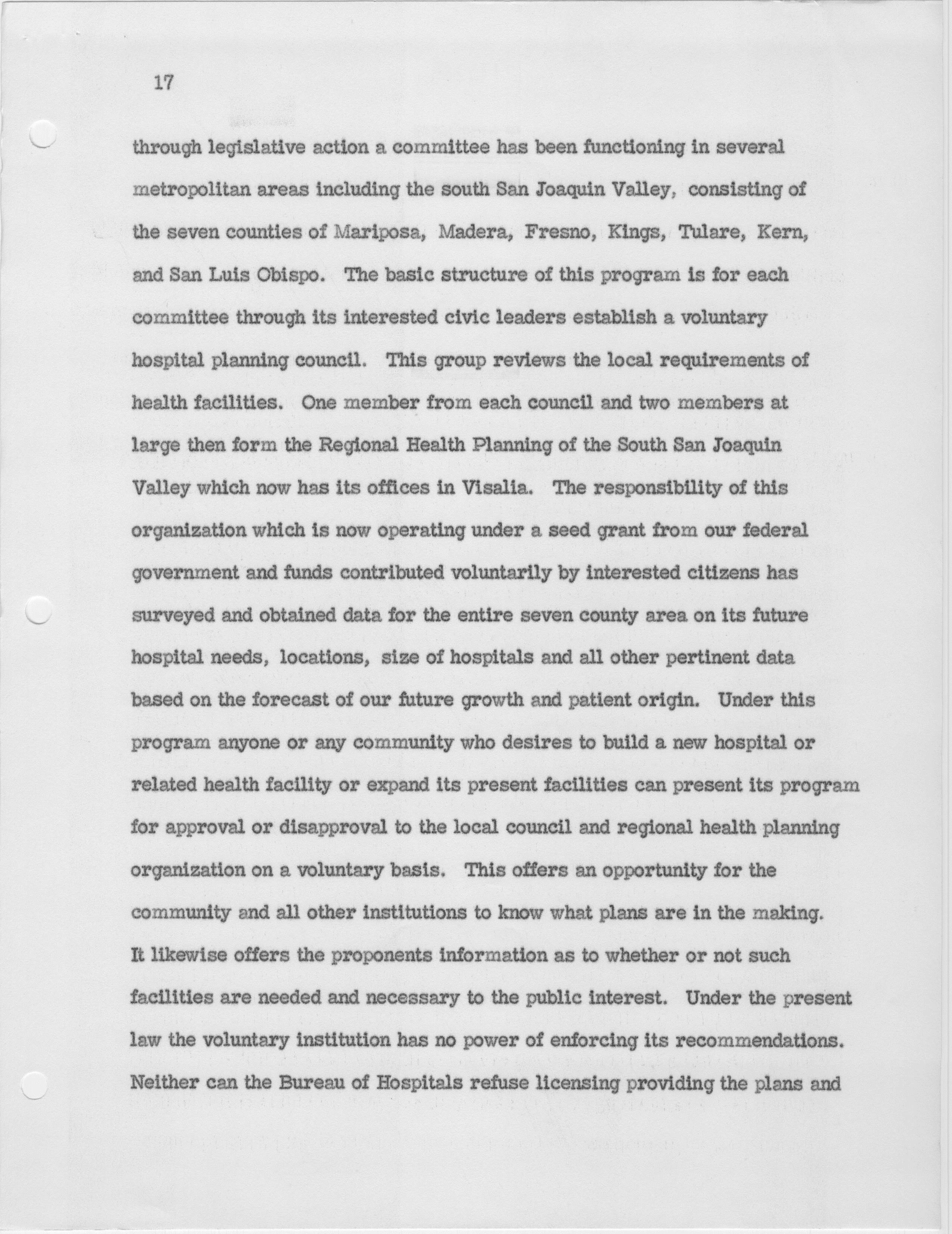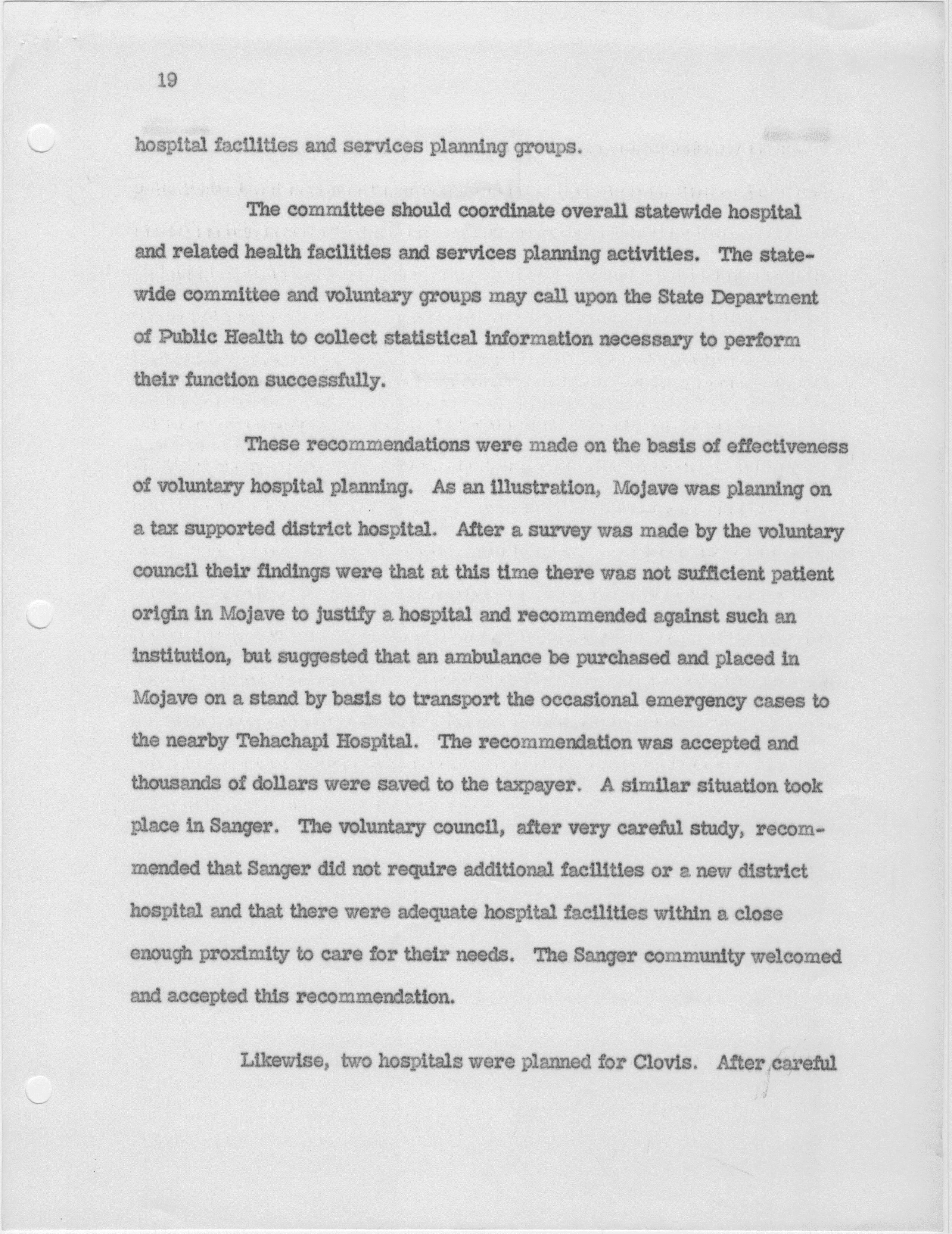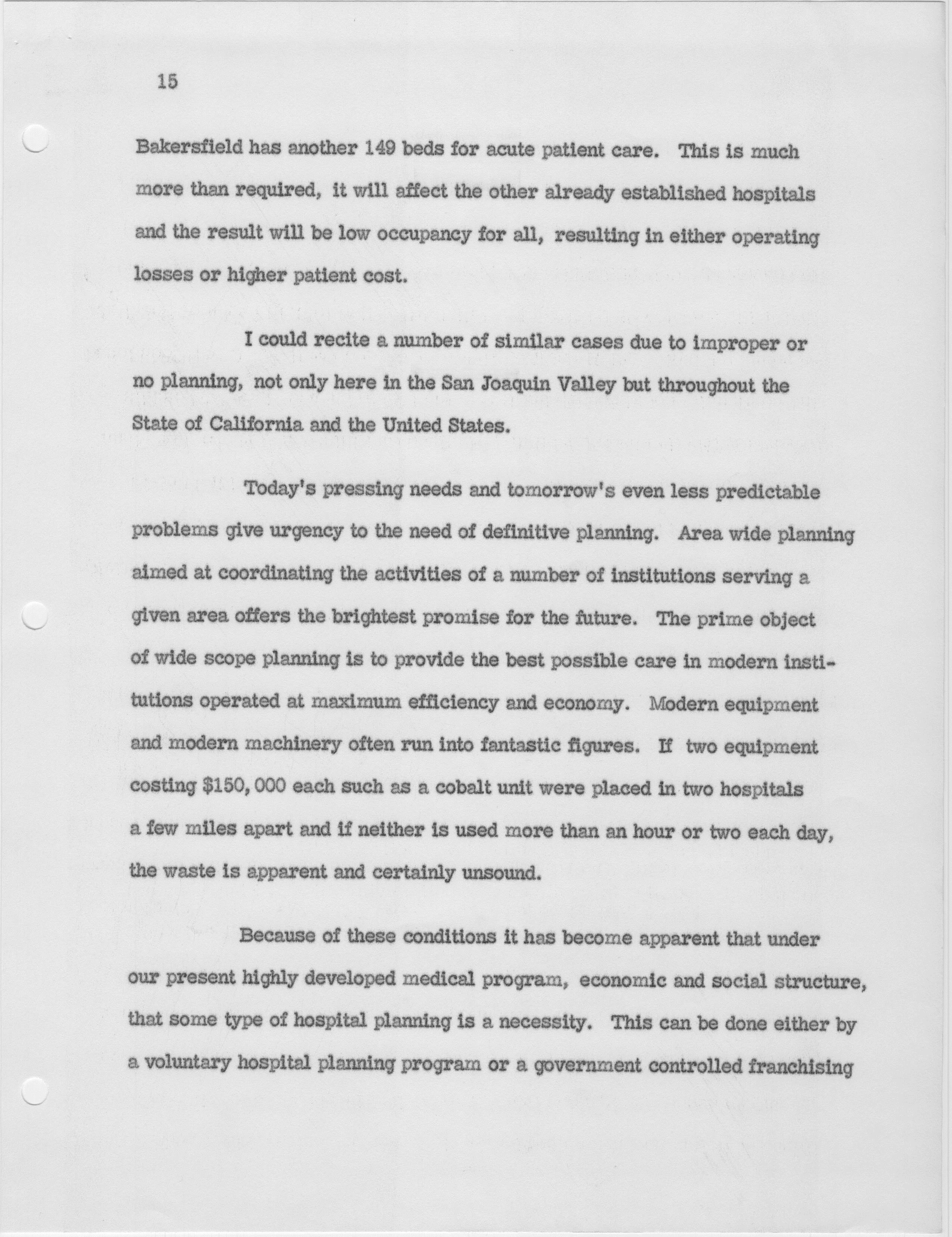 Hospital and Related Health Care Planning for the Future