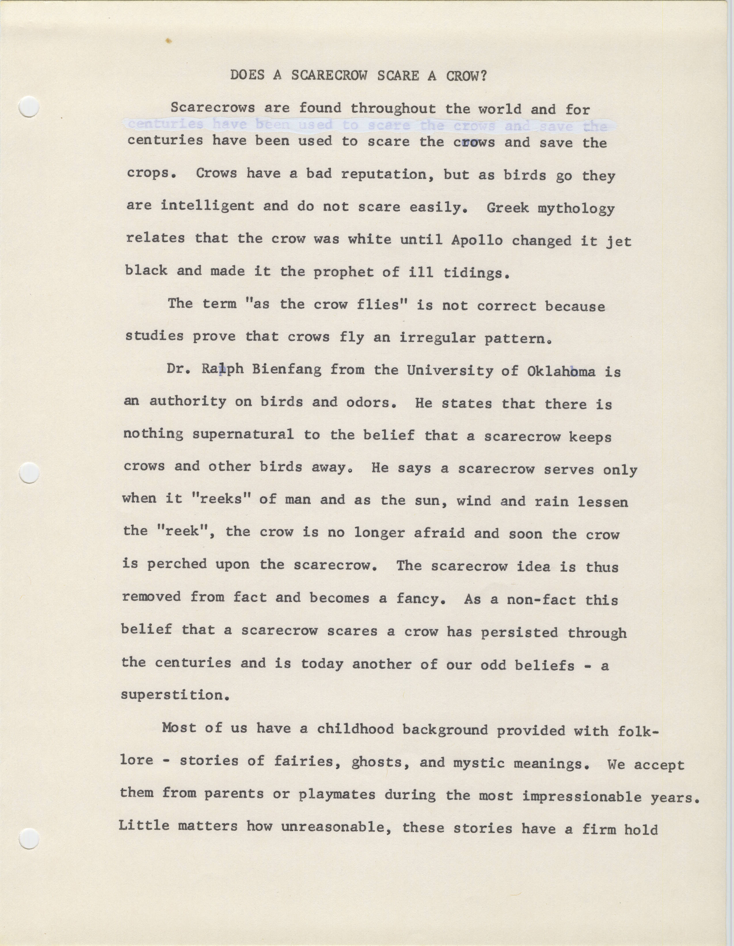 Does a Scarecrow Scare a Crow?