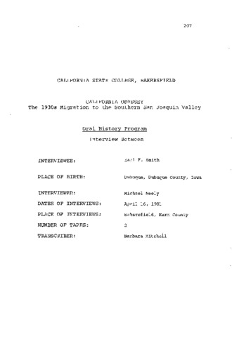 File Format: pdf (Portable Document Format)File Title: Interview Between INTERVIEWEE: Earl F. Smith INTERVIEWER: Michael NeelyPage Count: 27File Size: 1147993Original Checksum: 42c9c80f654af9cfddb4707e6ea770d6Mime Type: application/pdf