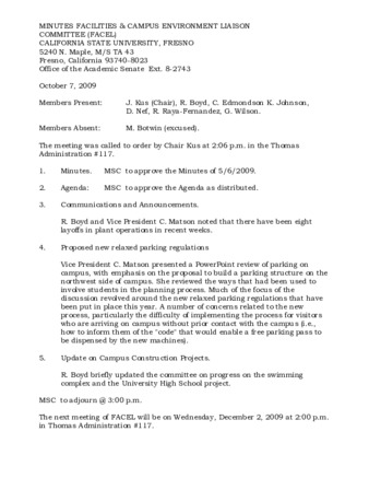 File Format: pdf (Portable Document Format)File Title: MINUTES FACILITIES & CAMPUS ENVIRONMENT LIAISONPage Count: 2File Size: 36342Original Checksum: 91f5575321bf8d9cb9f5232a67ceea52Mime Type: application/pdf