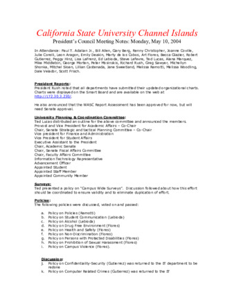 File Format: pdf (Portable Document Format)File Title: Microsoft Word - President Council Minutes 051004.docPage Count: 2File Size: 87411Original Checksum: ab305d9b9846877a5c3dad04602d32cfMime Type: application/pdf