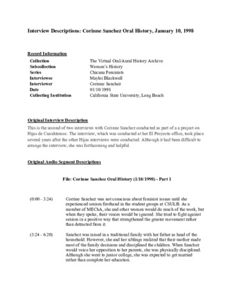 03 Corinne Sanchez Oral History (1/10/1998) - descriptions Public