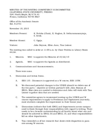 File Format: pdf (Portable Document Format)File Title: MINUTES OF THE WRITING COMPETENCY SUBCOMMITTEEPage Count: 2File Size: 35868Original Checksum: 44b53de8002210968b716bb672ea547fMime Type: application/pdf